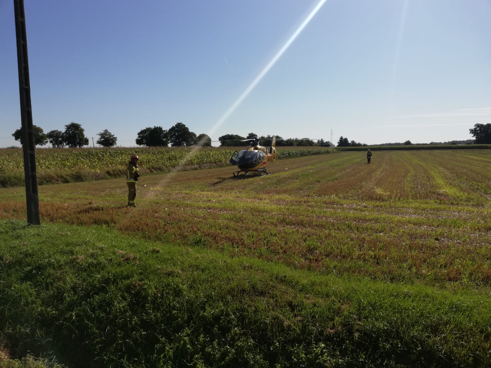 Działania Straży Pożarnej polegały na zabezpieczeniu miejsca zdarzenia, wspomaganiu ZRM w prowadzeniu Resuscytacji Krążeniowo-Oddechowej oraz odgrodzeniu terenu prowadzenia działań medycznych przy użyciu parawanu. Po decyzji o zadysponowaniu Lotniczego Pogotowia Ratunkowego część strażaków została wyznaczona do przygotowania lądowiska dla śmigłowca. Przybyła na miejsce zdarzenia załoga LPR kontynuowała wykonywanie RKO. Po braku nawrotu czynności życiowych lekarz stwierdził zgon mężczyzny. Odstąpiono od RKO. Zabezpieczono lądowisko na czas odlotu LPR. Dalej swoje czynności wykonywała Policja. Na miejsce zdarzenia przybył również Prokurator Rejonowy. Pojazdy zostały zabrane z miejsca zdarzenia. Drogę uprzątnięto. Działania zakończono.