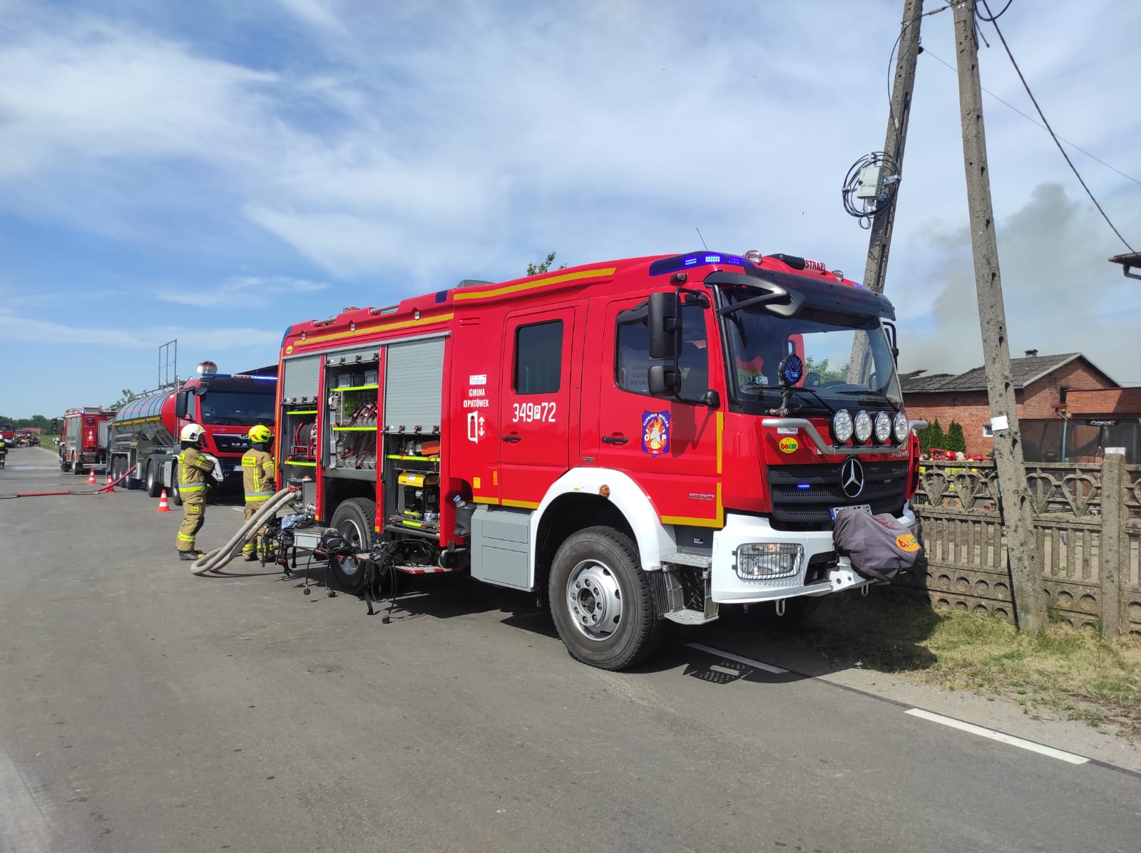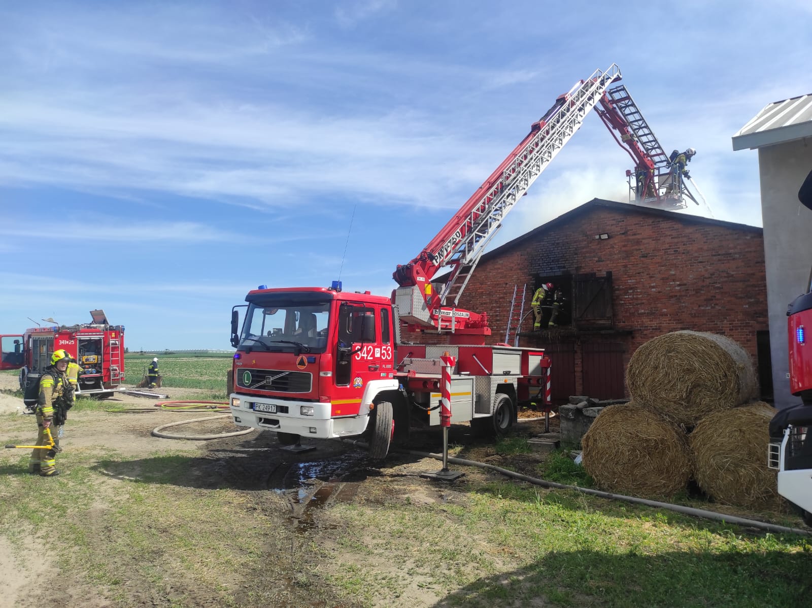 W dniu 31.05.2023 po godzinie 13 do Miejskiego Stanowiska Kierowania PSP w Kaliszu wpłynęła informacja o pożarze budynku inwentarsko- składowego w miejscowości Cienia Trzecia. W momencie przybycia pierwszego zastępu na miejsce zdarzenia pożarem objęty był dach oraz poddasze, na którym składowana była słoma i zboże. Do działań zadysponowano grupę operacyjną na czele z Komendantem Miejskim st. bryg Tomaszem Polakiem, Pluton Gaśniczy Kalisz oraz kontener OUO - Ostrów Wielkopolski. Działania straży pożarnej polegały na pomocy w ewakuacji zwierząt hodowlanych, podaniu dziewięciu prądów wody na pożar oraz usunięciu słomy i zboża składowanego na poddaszu. Działania ratownicze trwały 10 godzin w których udział brało 30 zastępów Państwowej i Ochotniczej Straży Pożarnej.