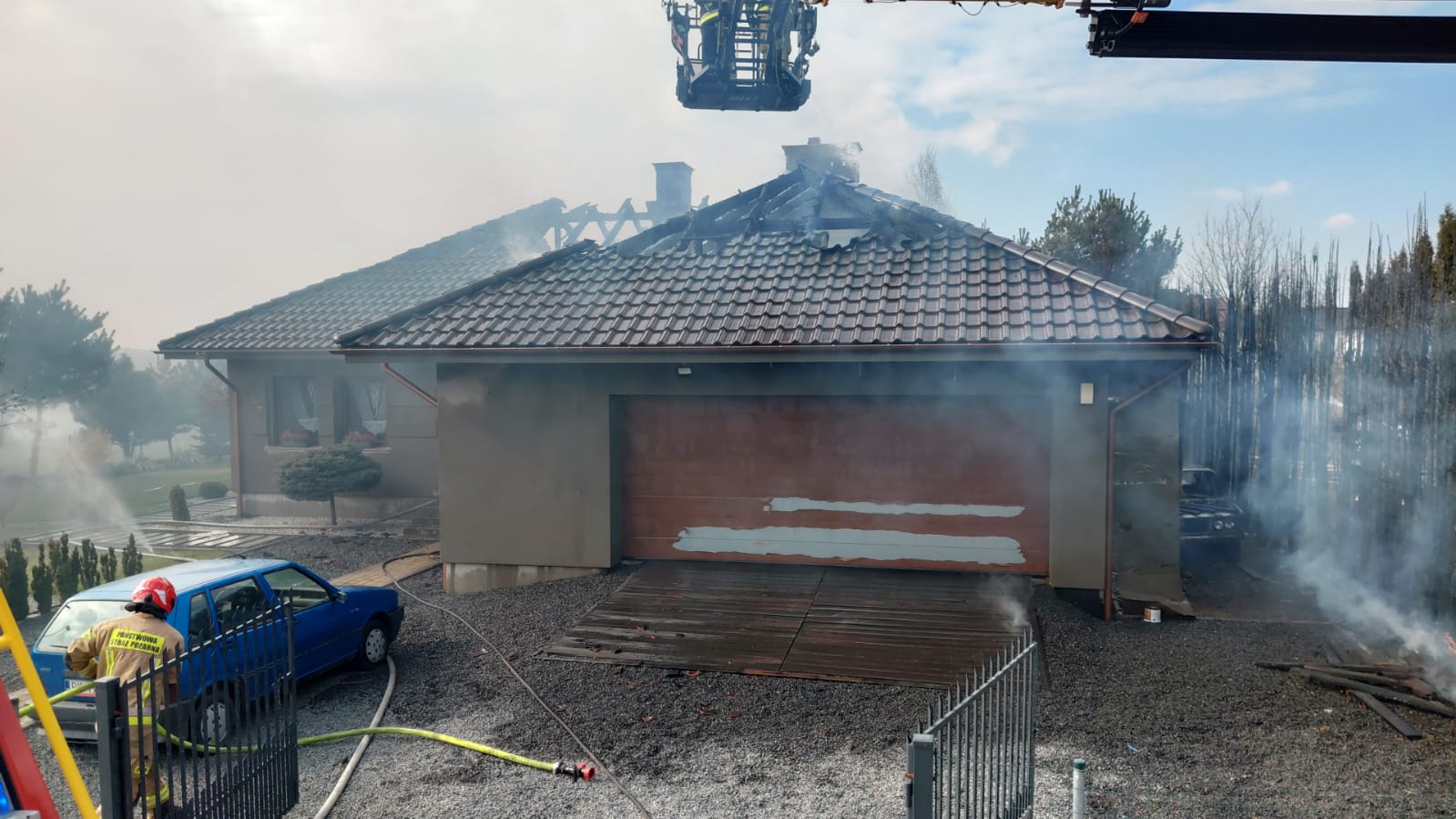 Pożar budynku jednorodzinnego, samochodów osobowych oraz tui