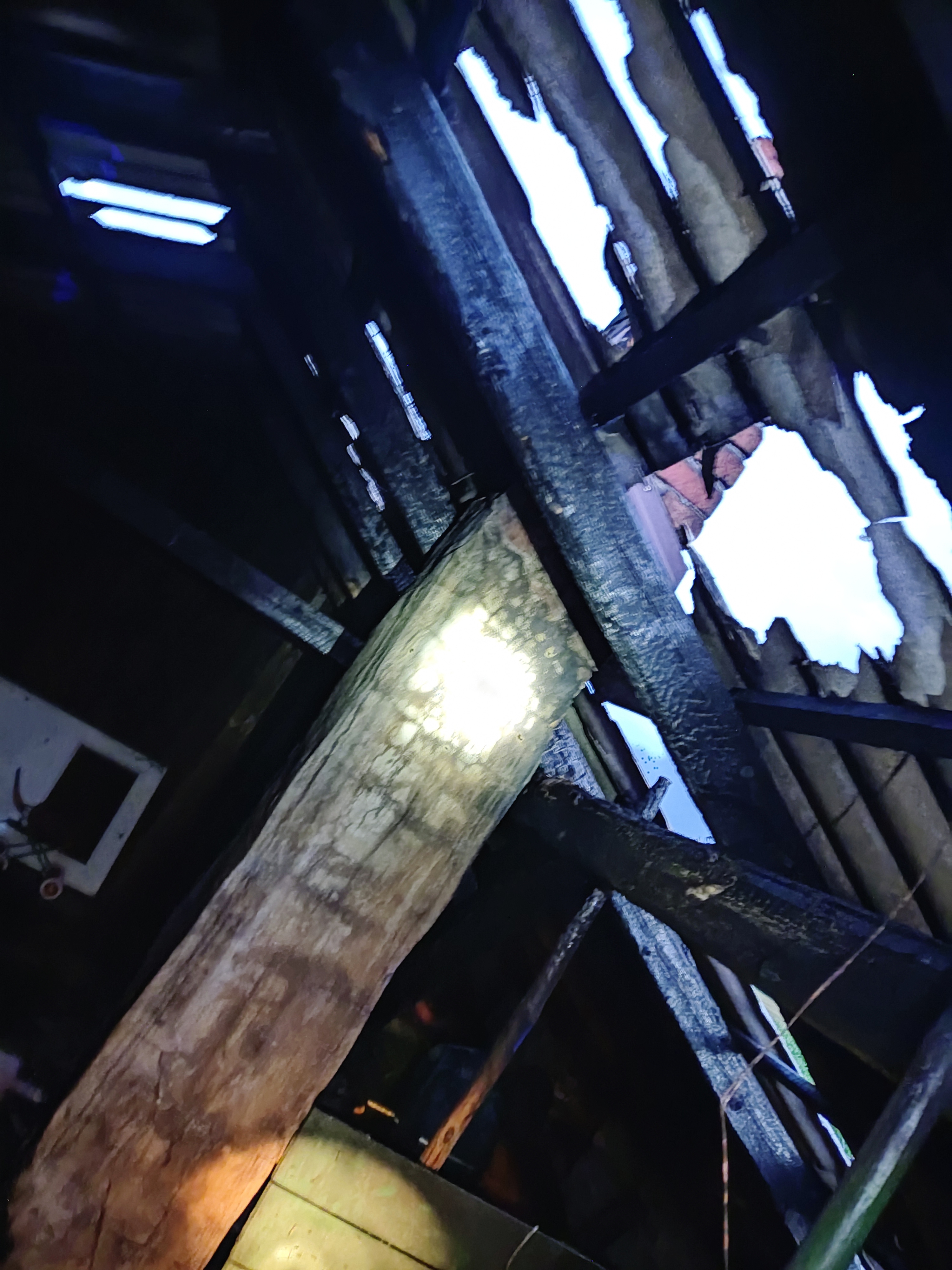 W czasie udzielania KPP osobie poszkodowanej ratownicy przystąpili do rozbiórki spalonej konstrukcji dachu. Wszystkie nadpalone elementy zostały przelane wodą. Na poddaszu ratownicy po ugaszeniu pracowali w maskach FFP 3. Konstrukcję dachu sprawdzono także kamerą termowizyjną i najwyższa temperatura była na kominie około 90°C. Stwierdzono przy tym pęknięcie komina które najprawdopodobniej przyczyniło się do pożaru dachu. Z pieca na parterze wybrano niespalony materiał palny i wybrano z wyczystki sadzę. Przy użyciu SH 23 ratownicy zabezpieczeni w szelkach asekuracyjnych przy użyciu sprzętu kominiarskiego udrożnili przewód kominowy. Dalsze czynności polegały na pokryciu uszkodzonego dachu plandeką przed ewentualnymi opadami deszczu.