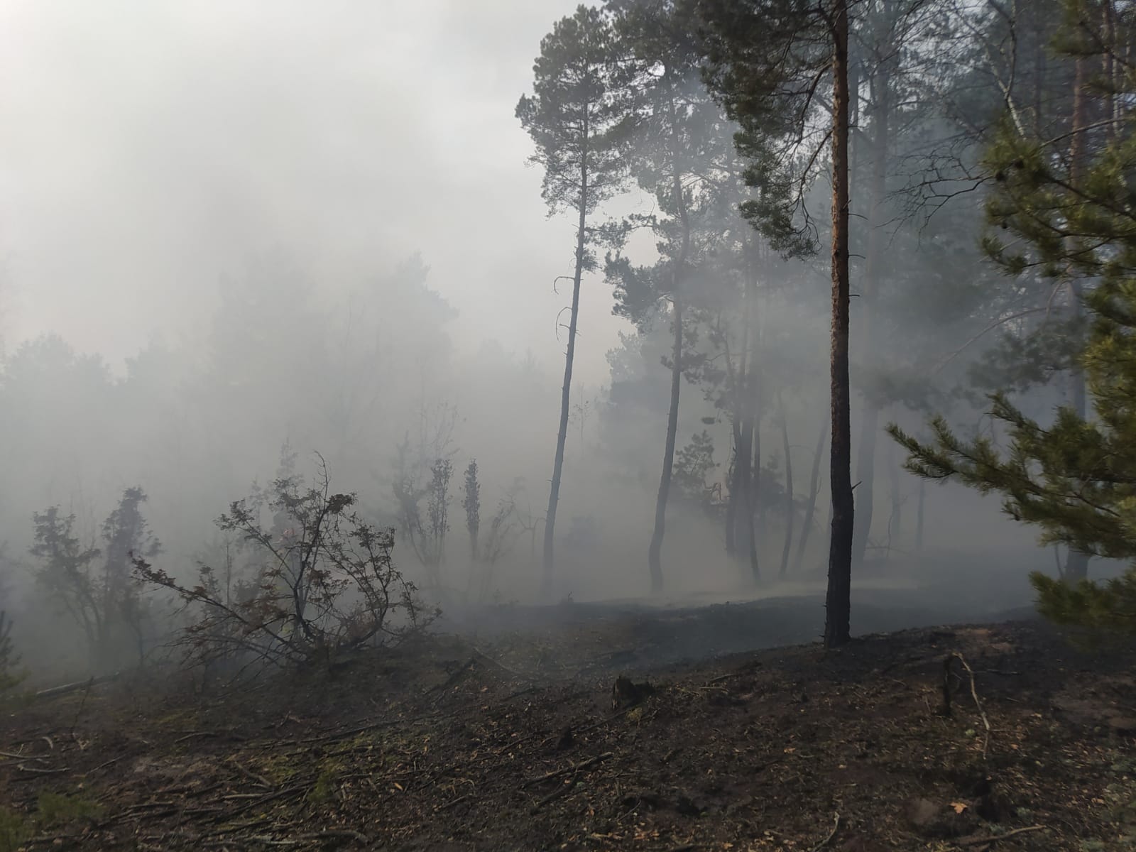 Działania gaśnicze prowadzono jednocześnie w trzech miejscach podając wodę na palące się drzewa i poszycie leśne. W trakcie tych działań utworzono bufor wodny na bazie GCBA 9/60 oraz GCBA 5/32. Woda dostarczana była poprzez dowożenie z hydrantów oraz zbudowano magistralę wodną z węży W-75 na odcinku ok. 400 metrów o wydajności 1600 l/min.