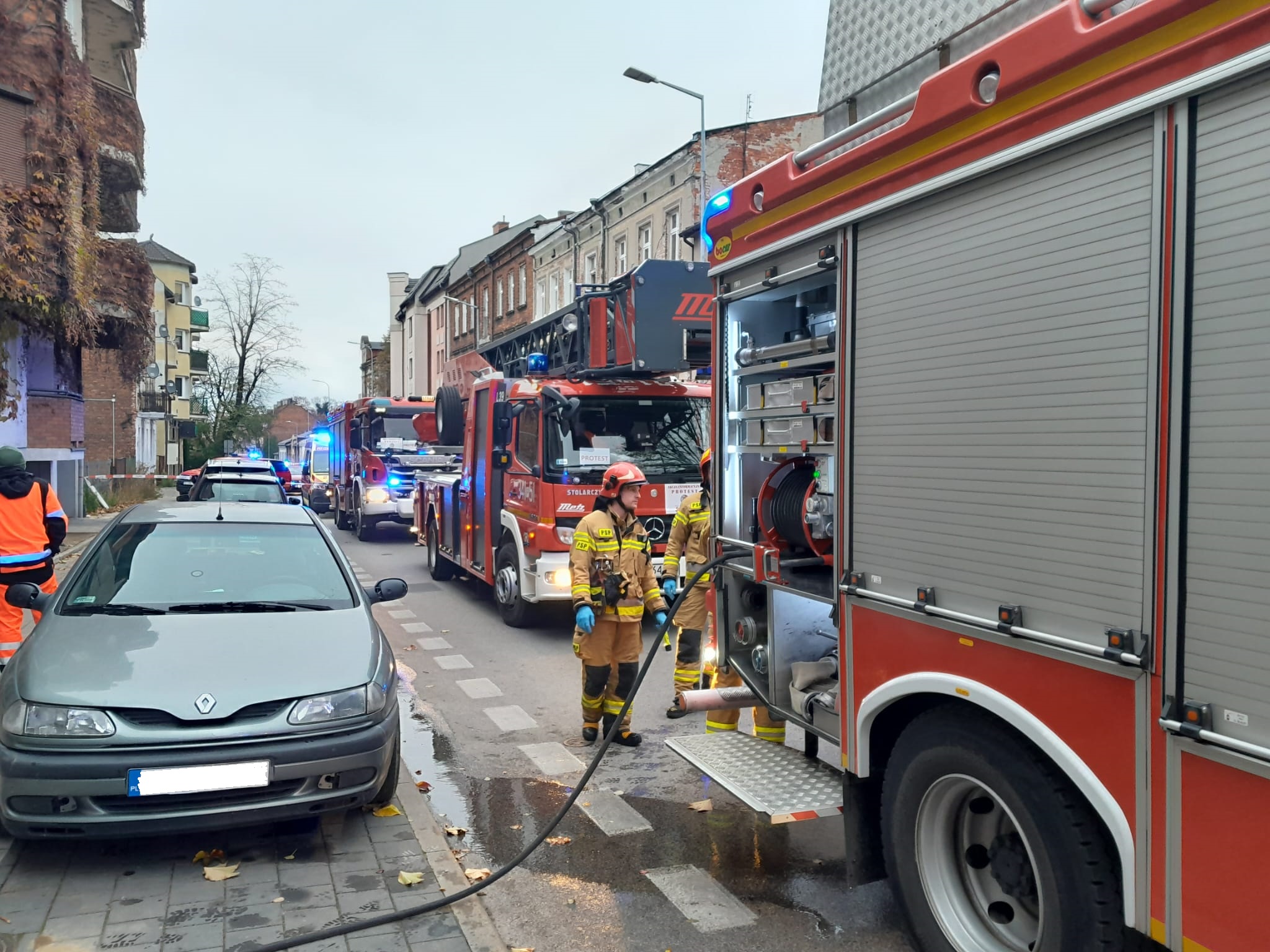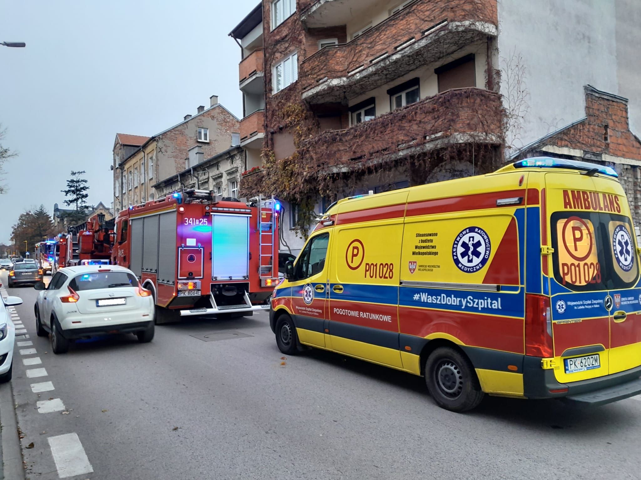 W dniu 17.11.2022 o godz. 7:33 do Stanowiska Kierowania Komendanta Miejskiego PSP w Kaliszu, wpłynęło zgłoszenie o występującym zadymieniu w mieszkaniu w Kaliszu przy ulicy Widok 27. Na miejsce skierowano łącznie 6 zastępów Państwowej i Ochotniczej Straży Pożarnej. Po dojeździe na miejsce potwierdzono spore zadymianie, a z budynku przed przybyciem Straży Pożarnej ewakuowało się czterech lokatorów, którzy również poinformowali, że w zadymionym mieszkaniu może się ktoś znajdować. W związku z tym niezwłocznie wprowadzono rotę strażaków ubranych w aparaty ODO z linią gaśniczą do środka budynku w celu lokalizacji zagrożenia. Po wejściu do mieszkania, znaleziono osobę którą od razu ewakuowano z pomieszczenia i przekazano Zespołowi Ratownictwa Medycznego który niestety stwierdził zgon tej osoby(mężczyzna – ok. 66 lat). Równocześnie strażacy zlokalizowali pożar i przystąpili do jego ugaszenia, oddymienia pomieszczeń i częściowej rozbiórki pomieszczenia. W działaniach trwających 2 godziny wzięło udział 6 zastępów straży pożarnej, w sumie 18 strażaków, w tym Grupa Operacyjna Komendy Miejskiej Państwowej Straży Pożarnej w Kaliszu pod dowództwem Komendanta Miejskiego Państwowej Straży Pożarnej w Kaliszu st. bryg. Tomasza Polaka.
