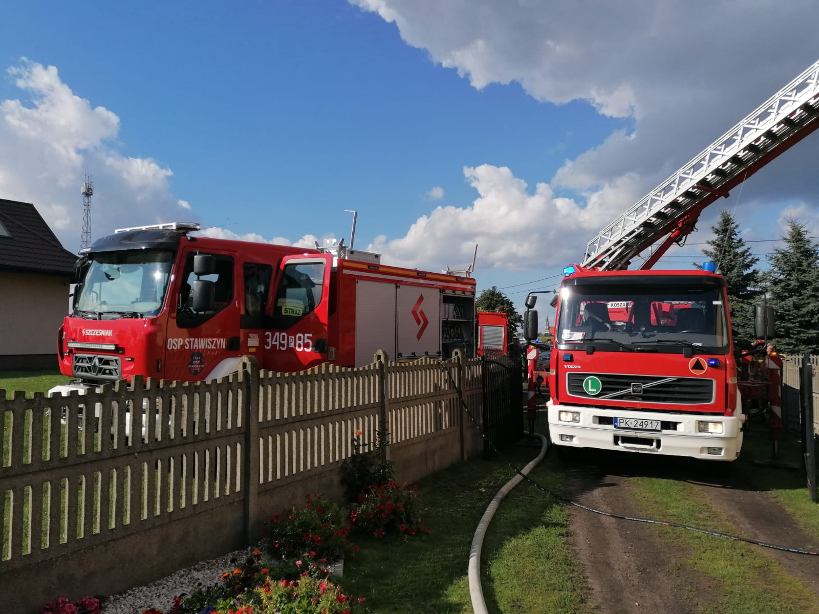W dniu 2 września 2021 roku, krótko przed godziną 15, Stanowisko Kierowania Komendanta Miejskiego Państwowej Straży Pożarnej w Kaliszu otrzymało zgłoszenie o pożarze budynku mieszkalnego, jednorodzinnego znajdującym się w miejscowości Werginki w podkaliskiej gminie Stawiszyn. Na miejsce zdarzenia Dyżurny Stanowiska Kierowania zadysponował 6 zastępów Państwowej i Ochotniczej Straży Pożarnej z JRG nr 1 i 2 oraz OSP Stawiszyn i Zbiersk. Po dojechaniu na miejsce zdarzenia ratownicy potwierdzili pożar poddasza budynku mieszkalnego. Strażacy przystąpili do działań gaśniczych z drabiny przystawnej oraz od wewnątrz budynku. Po zlokalizowaniu pożaru dalsze działania strażaków polegały na wykonaniu prac rozbiórkowych konstrukcji budowlanej, w tym przypadku były to płyty blachy dachowej pod którą cały czas tliły się zarzewia ognia. W trakcie działań usunięto, także gniazdo owadów błonkoskrzydłych, które znajdowało się na poddaszu, ponieważ owady utrudniały pracę strażaków i stanowiły zagrożenie dla osób postronnych. Po wykonaniu tych czynności cały budynek sprawdzono i po stwierdzeniu braku zagrożenia działania zakończono. Na miejscu obecna była również Grupa Operacyjna Komendanta Miejskiego Państwowej Straży Pożarnej w Kaliszu oraz Policja.