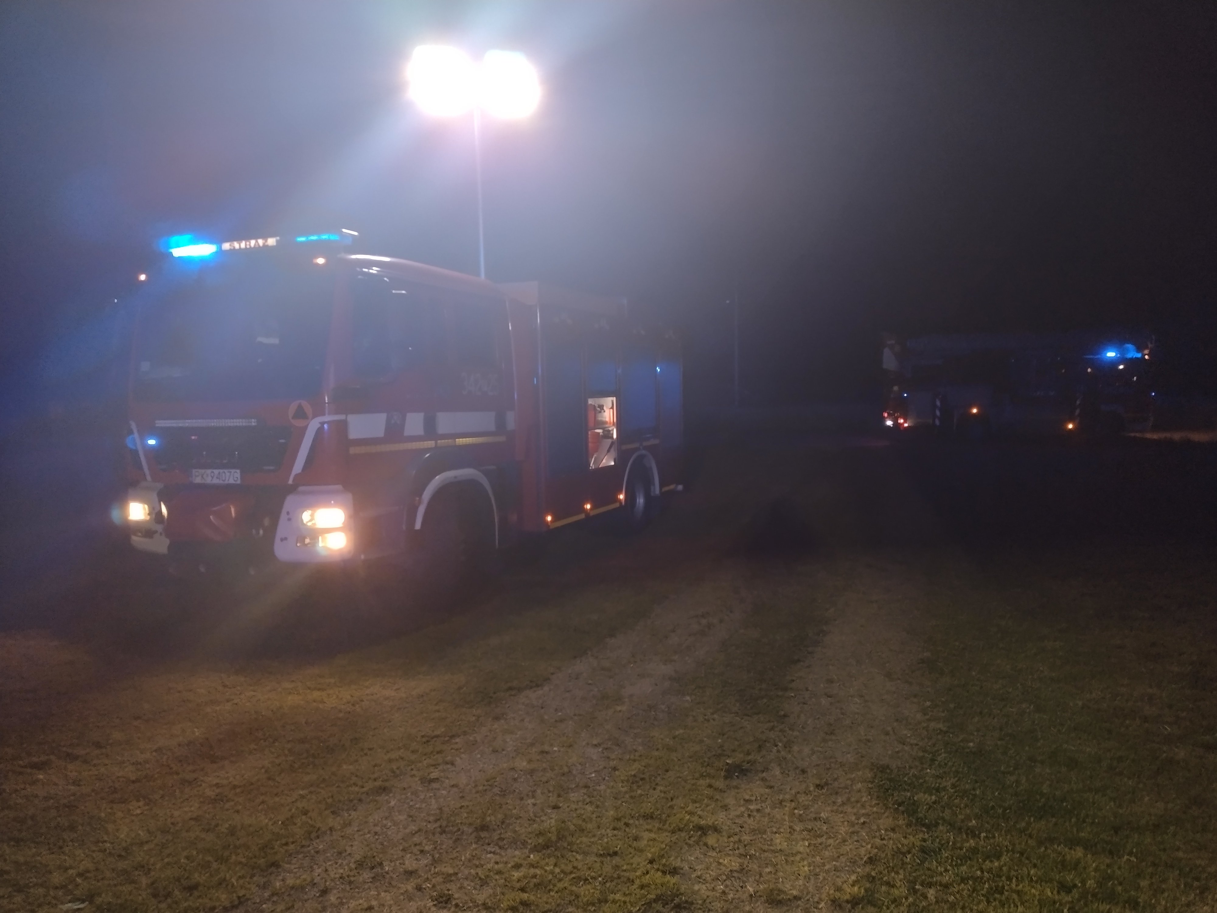 W dniu 20.05.2023w miejscowości Rożdżały po przybyciu na miejsce zdarzenia stwierdzono, że palą się sadze w kominie budynku jednorodzinnego. Mieszkańcy opuścili budynek, piec CO został wygaszony, przed przybyciem straży. Działania straży polegały na zabezpieczeniu miejsca zdarzenia. Ratownicy ubrani w aparaty OUO, przy użyciu piasku ugasili pożar sadzy. Następnie wyciorem wyczyszczono przewód kominowy, z wyczystki wybrano pozostałości sadzy. Pomieszczenia przewietrzono. Dalej sprawdzono kamerą termowizyjną przewód kominowy oraz miernikiem wielogazowym na zawartość tlenku węgla - wynik 0,0 ppm - brak zagrożenia. Wydano zalecenie o nie korzystaniu z nieszczelnego przewodu kominowego. Akcję zakończono.