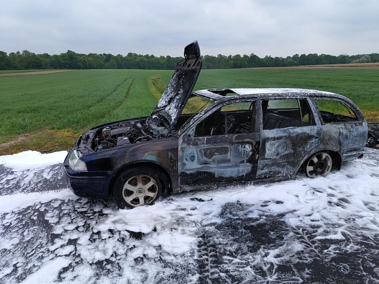 W dniu 11.05.2024 roku, przed godziną 12:00 do Miejskiego Stanowiska Kierowania wpłynęła informacja, że w miejscowości Nowa Kakawa, na drodze, pali się samochód osobowy marki Skoda Octavia. Osoba podróżująca autem, opuściła pojazd przed przybyciem zastępów straży. Nie wymagała KPP.