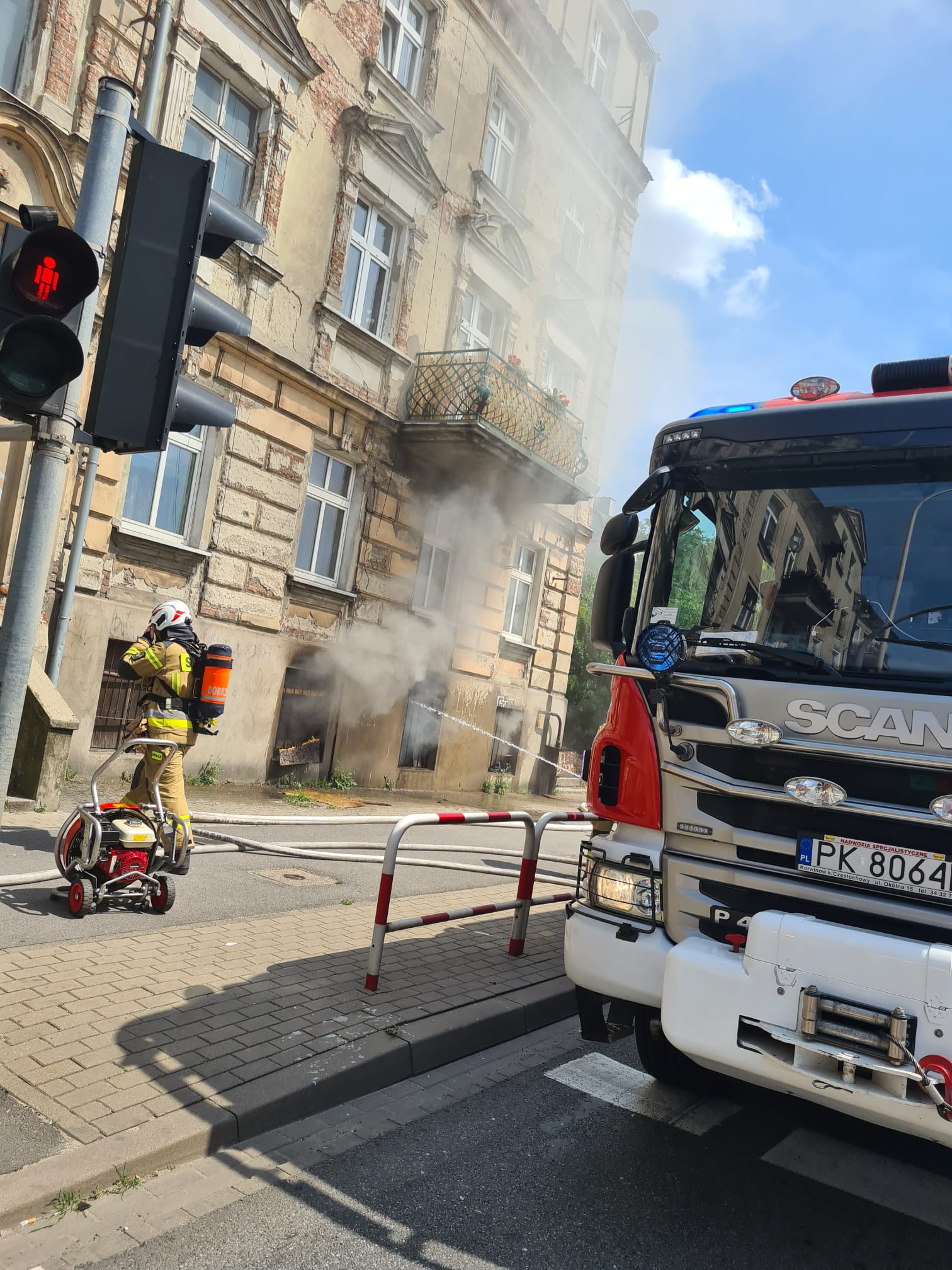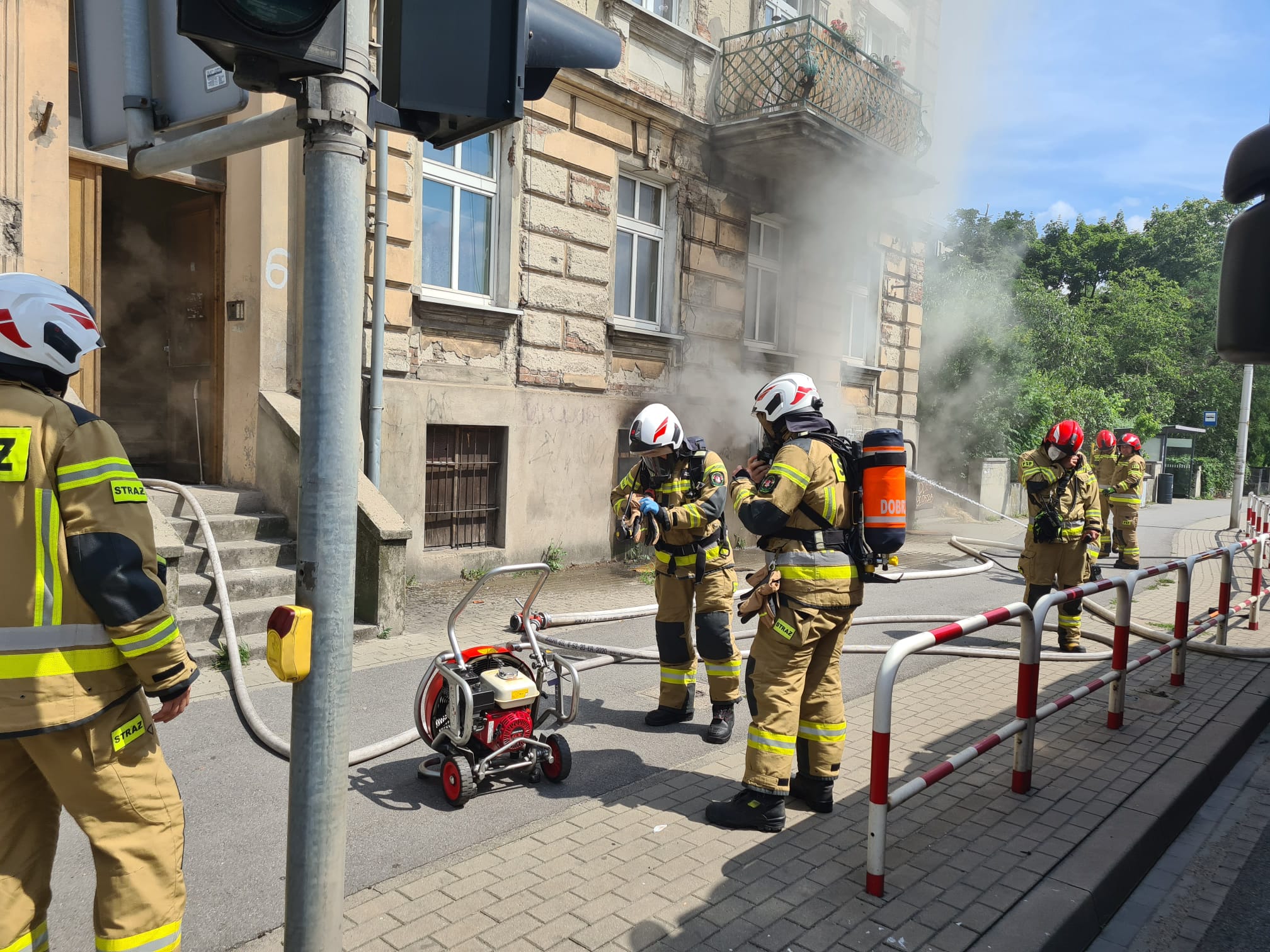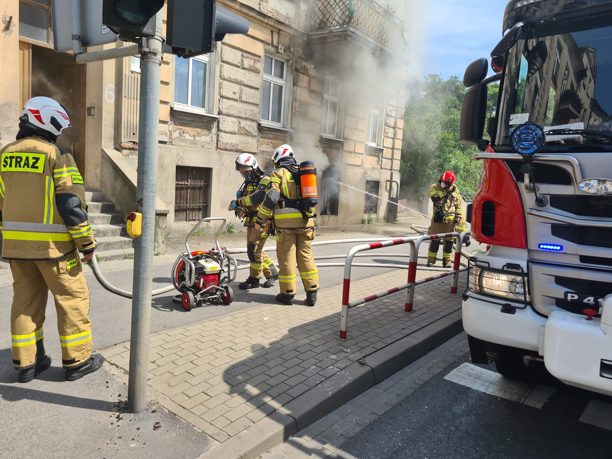 21 lipca o 13:38 do SKKM w Kaliszu wpłynęło zgłoszenie o silnym zadymieniu w budynku wielorodzinnym przy ulicy Łódzkiej 6 w Kaliszu. Na miejsce zadysponowane 3 zastępy z JRG-1 w Kaliszu wraz z Dowódcą JRG oraz zastępy OSP Kalisz- Lis i OSP Kalisz - Dobrzec. Po przybyciu na miejsce zdarzenia potwierdzono silne zadymienie wydobywające się z piwnicy budynku. Zadymiona była również klatka schodowa. Strażacy wyposażeni w sprzęt OUO, kamerę termowizyjną oraz nawodnioną linię gaśniczą udali się do wnętrza budynku w celu zlokalizowania miejsca pożaru oraz sprawdzeniu klatki schodowej. Na palące się śmieci w piwnicy podano dwa prądy wody jeden od zewnątrz przez okna drugi od wnętrza piwnicy. Nie stwierdzono osób poszkodowanych w piwnicy ani na klatce schodowej. Przybyłe na miejsce zdarzenia Pogotowie Energetyczne odcięło zasilanie w budynku. Żaden z mieszkańców nie uskarżał się na dolegliwości związane z zatruciem dymem lub tlenkiem węgla. Dalsze działania polegały na oddymieniu i przewietrzeniu piwnicy oraz klatki schodowej, a także sprawdzono wszystkie mieszkania w budynku pod kątem obecności tlenku węgla. Po przewietrzeniu mieszkań i potwierdzeniu braku zagrożenia działania strażaków zostały zakończone.