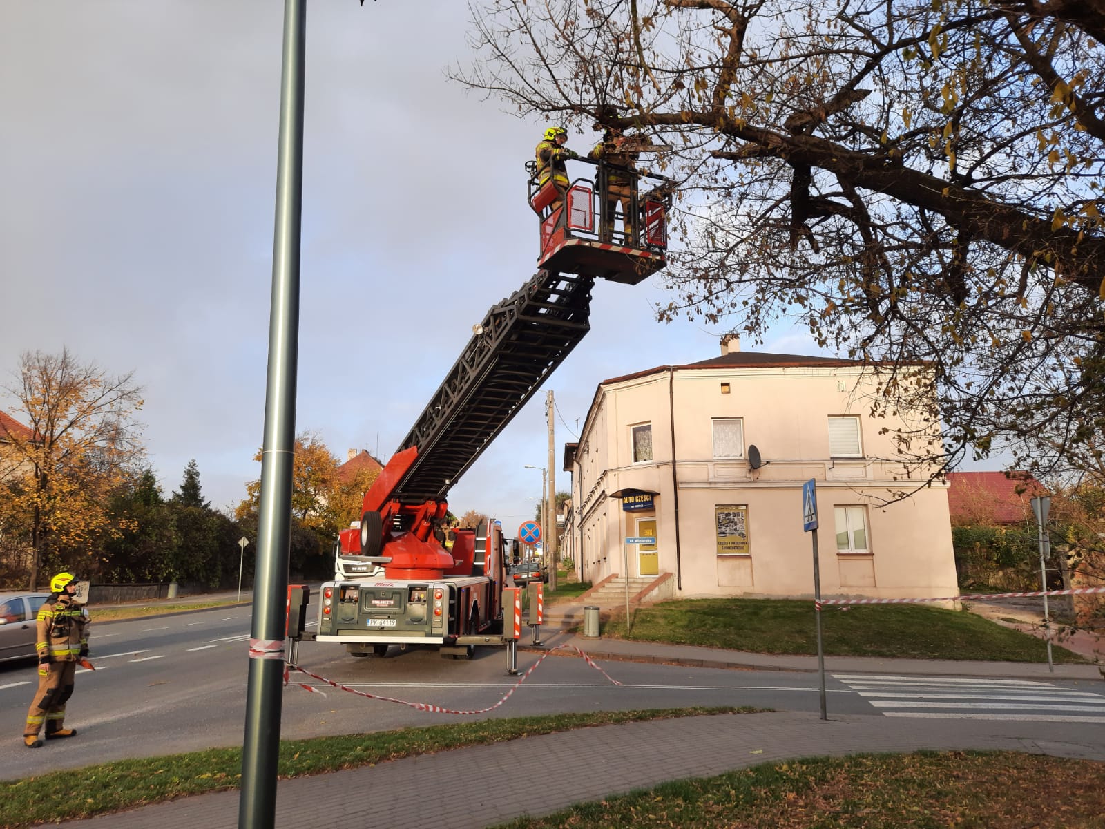21 października br. nad miastem Kaliszem i powiatem Kaliskim przeszła wichura która łamała drzewa, słupy energetyczne oraz uszkadzała dachy budynków powodując znaczne zniszczenia. W sumie strażacy PSP i OSP byli zadysponowani ponad 120 razy do zdarzeń. Większość z nich bo ponad 100 wyjazdów dotyczyło wiatrołomów czyli połamanych drzew, uszkodzonych linii energetycznych itp. Odnotowaliśmy również prawie 20 zgłoszeń dotyczących uszkodzonych dachów w większości były to niewielkie uszkodzenia dachówek lub pozrywanych blach. W związku z uszkodzeniem linii energetycznych odnotowaliśmy także dwa pożary na terenie gminy Brzeziny oraz Blizanów. W zdarzeniach brały udział niemal wszystkie jednostki zarówno PSP jak i OSP z terenu działania naszej komendy. W trakcie prowadzonych działań nikt nie ucierpiał. Wszystkim druhom ochotniczych straży pożarnych oraz funkcjonariuszom serdecznie dziękujemy za sprawne działania ratowniczo-gaśnicze oraz pomoc mieszkańcom naszego rejonu.