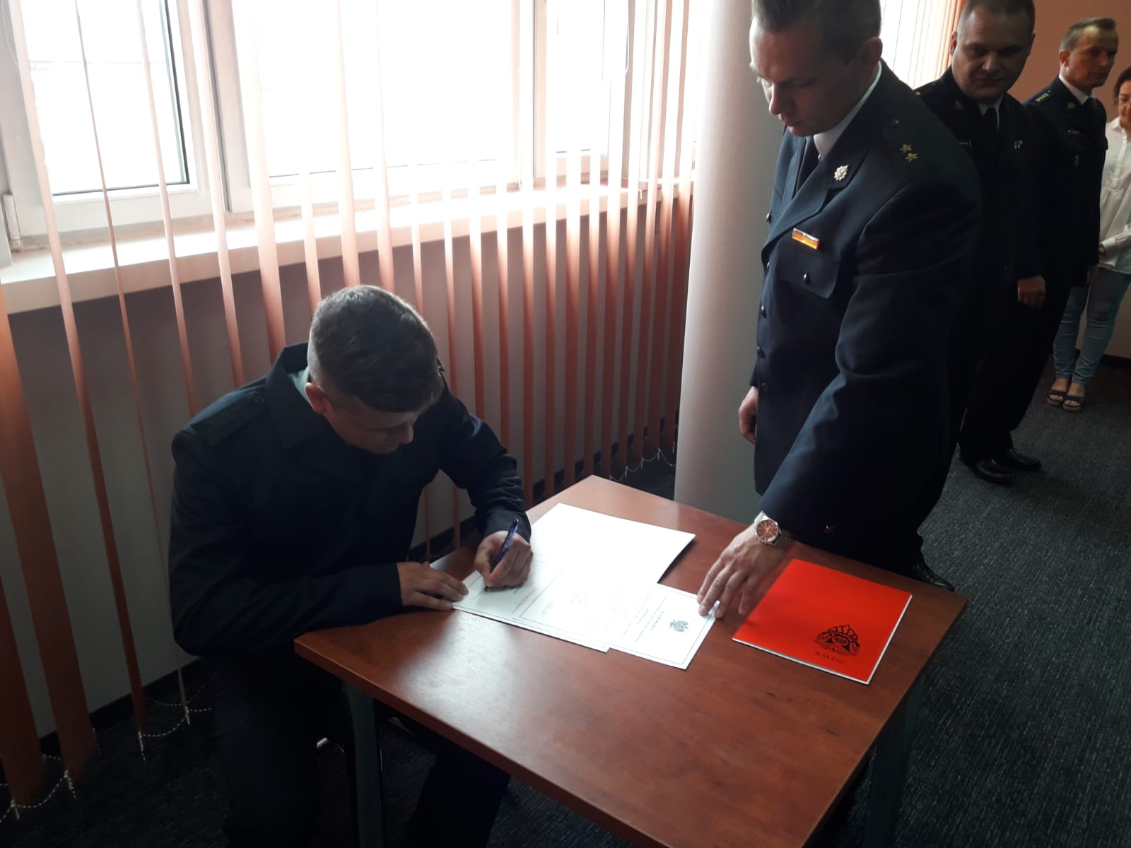 W dniu 23 lipca 2021 roku w Komendzie Miejskiej Państwowej Straży Pożarnej w Kaliszu miało miejsce ślubowanie nowoprzyjętych funkcjonariuszy. Do stanu osobowego kaliskiej komendy dołączyli: str. Przybyła Norbert oraz str. Kujawa Dawid. Ślubowanie, zgodnie z ceremoniałem przyjął Komendant Miejski Państwowej Straży Pożarnej w Kaliszu bryg. Sławomir Kotoński. Przy ślubowaniu obecni byli również funkcjonariusze Komendy Miejskiej Państwowej Straży Pożarnej oraz Jednostki Ratowniczo-Gaśniczej. Po ślubowaniu nastąpiło podpisanie oraz wręczenie aktów ślubowania. Teraz przed młodymi adeptami pożarnictwa szkolenie w jednym z ośrodków szkolenia na terenie kraju.