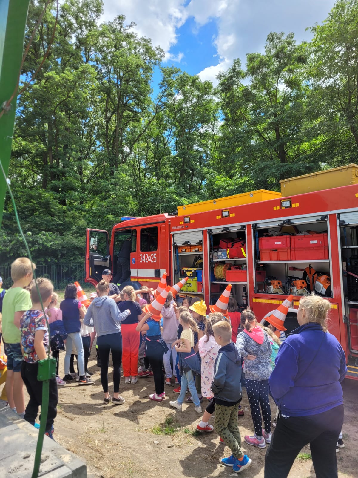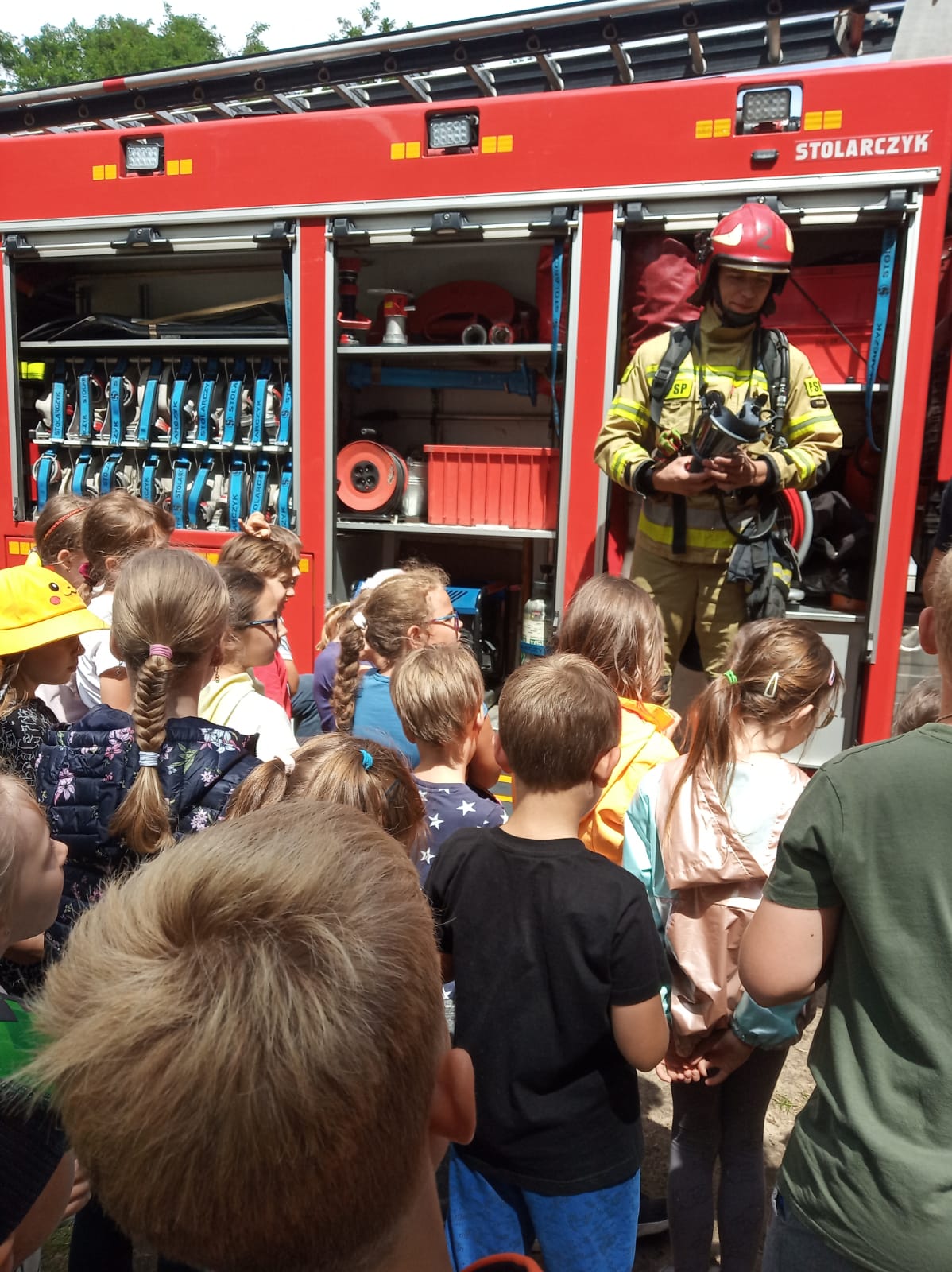Wizyta na terenie stanicy była jednocześnie okazją do omówienia z uczestnikami półkolonii zasad bezpiecznego wypoczynku w czasie wakacji, szczególnie w lesie i nad wodą. Strażacy zaprezentowali samochód pożarniczy oraz omówili sprzęt ratowniczo-gaśniczy, który na co dzień jest używany przez nich przy zdarzeniach. W ramach spotkania przypomniano również numer alarmowy i schemat prowadzenia rozmowy z dyspozytorem podczas zgłaszania zagrożenia.