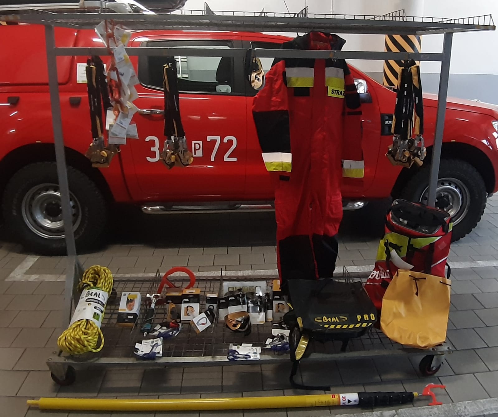 W ramach zadania pn. „Zakup ubrań i sprzętu wysokiej specjalizacji dla Komendy Miejskiej Państwowej Straży Pożarnej w Kaliszu” zakupiono kombinezony do pracy na wysokości oraz sprzęt specjalistyczny tj.: urządzenia do autoasekuracji, miernik wielogazowy, uprząż do pracy na wysokości, worki sprzętowe oraz sprzęt pomocniczy wykorzystywany podczas działań na wysokości i pod ziemią.