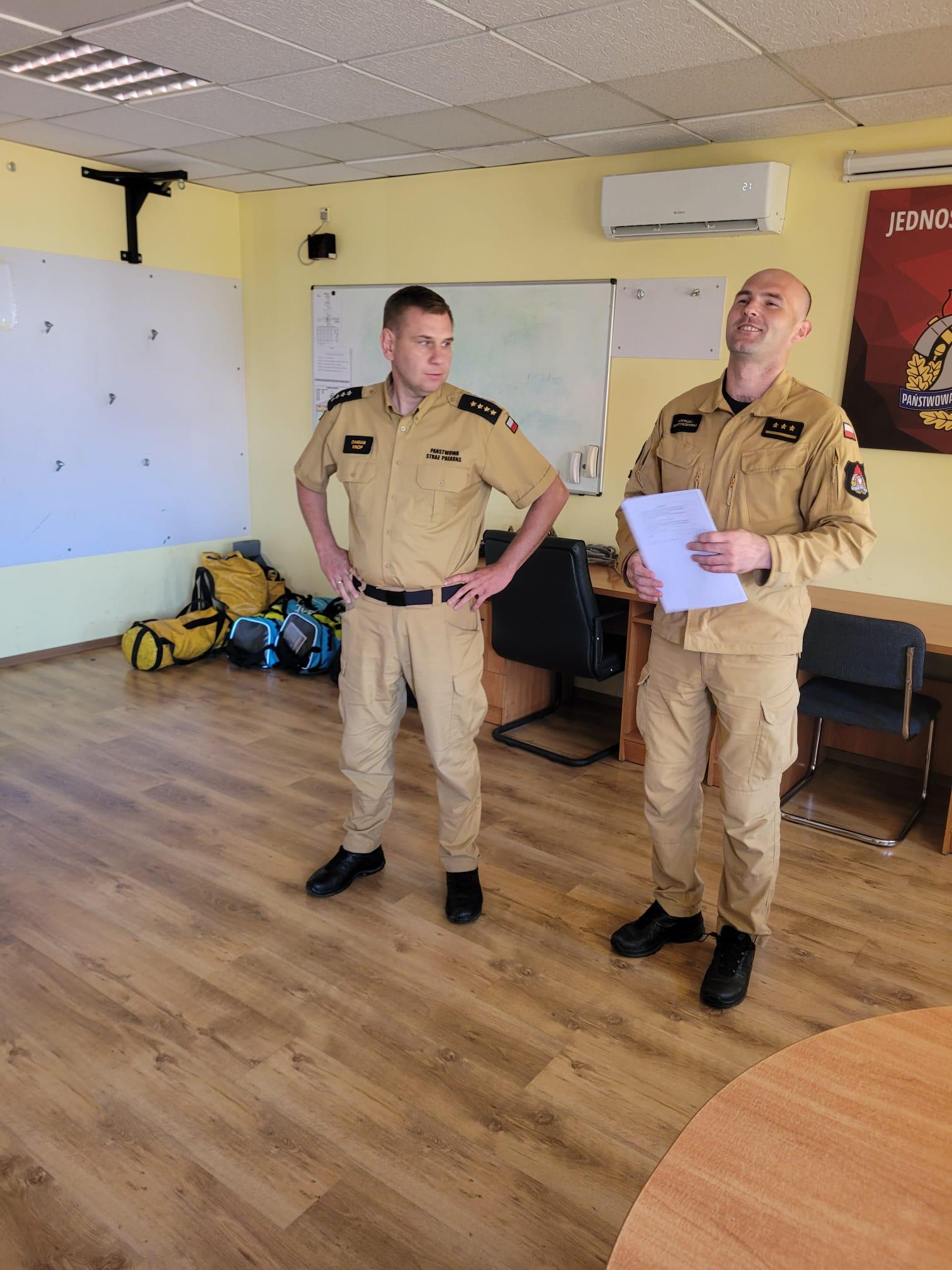 Szkolenie rozpoczęło się od osobistego przywitania kursantów przez Z-ce Komendanta Miejskiego PSP w Kaliszu st. kpt. Damiana Knopa oraz Z-ce Dowódcy JRG 1 w Kaliszu mł. kpt. Andrzeja Bartoszewskiego