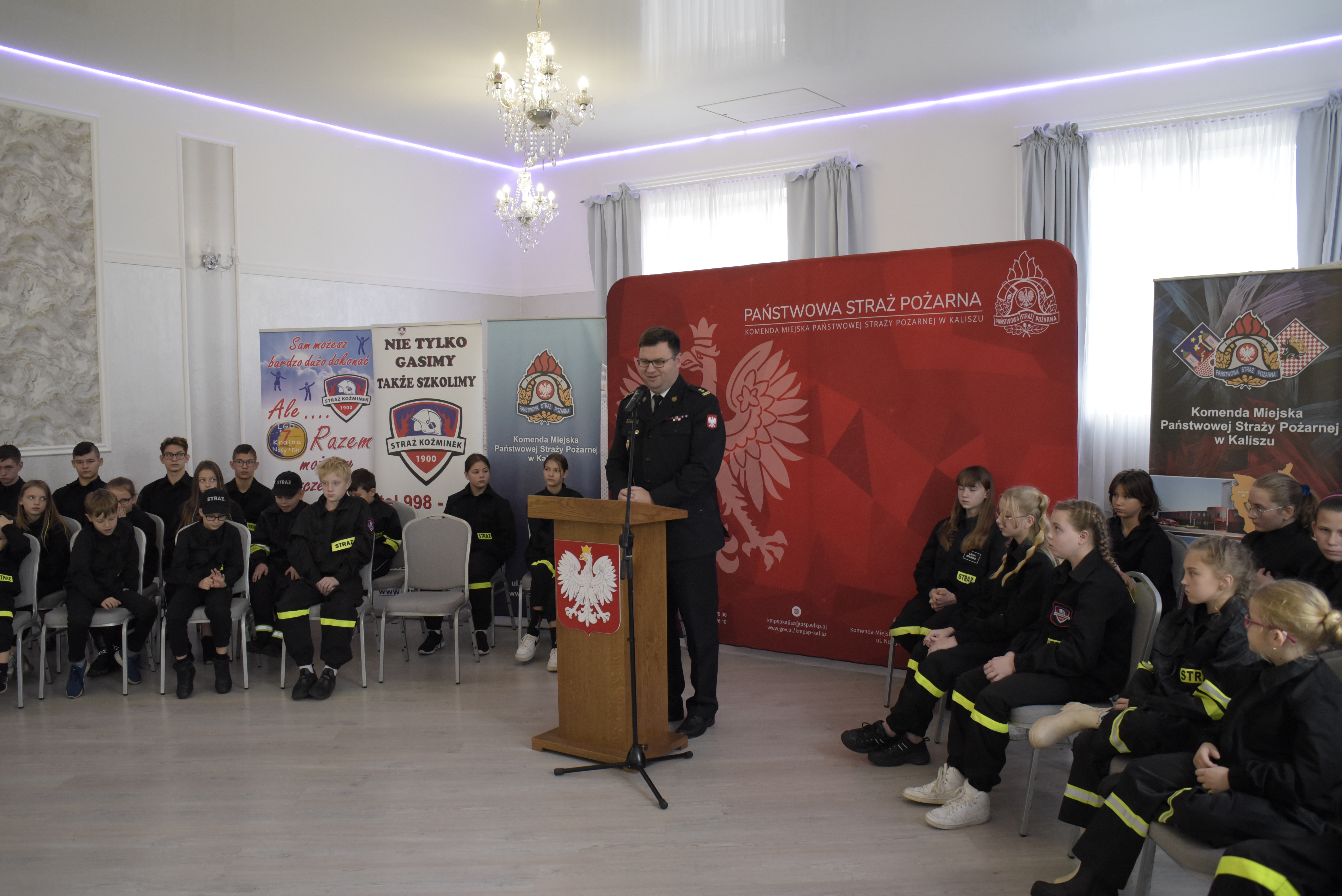 UROCZYSTE WRĘCZENIE PROMES DLA MŁODZIEŻOWYCH DRUŻYN POŻARNICZYCH Z TERENU MIASTA I POWIATU KALISKIEGO
