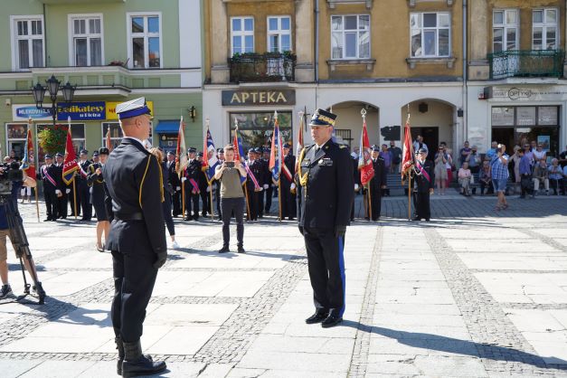 Rozpoczynając uroczysty apel dowódca uroczystości kpt. Paweł Piwoński złożył meldunek nadbryg. Arkadiuszowi Przybyle zastępcy komendanta głównego PSP, po którym nastąpiło podniesienie flagi państwowej oraz odegrano hymn narodowy.