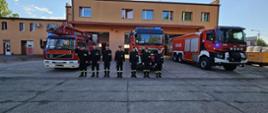 Przy włączonych sygnałach świetlnych i dźwiękowych w pojazdach pożarniczych zmiany służbowe oddały hołd na placach przed Jednostkami Ratowniczo-Gaśniczymi.