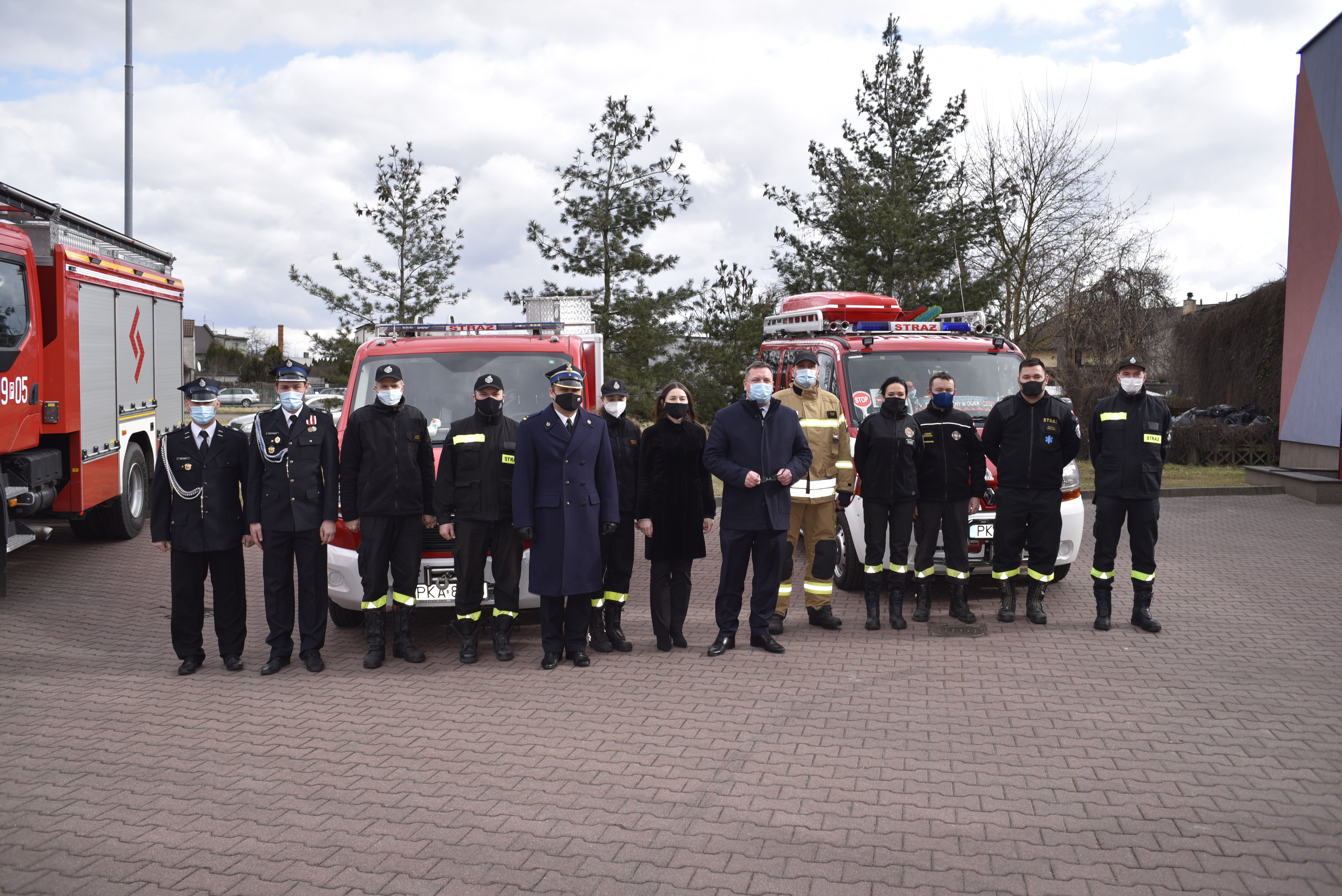 W piątek 5 marca 2021 roku Komendę Miejską Państwowej Straży Pożarnej w Kaliszu wizytował Minister w Kancelarii Prezesa Rady Ministrów dr Michał Wójcik. Oficjalnego powitania w imieniu kaliskich strażaków dokonał Komendant Miejski Państwowej Straży Pożarnej w Kaliszu mł. bryg. Sławomir Kotoński wraz z Zastępcą Komendanta Miejskiego mł. bryg. Maciejem Saganowskim. Spotkanie z Ministrem dotyczyło przede wszystkim omówienia realizacji zakupów dla straży pożarnych w ramach Funduszu Sprawiedliwości, dzięki któremu Jednostki Ochrony Przeciwpożarowej miały możliwość zakupu sprzętu ratowniczego niezbędnego do udzielenia pomocy poszkodowanym bezpośrednio na miejscu popełnienia przestępstwa, tj. defibrylatory, torby ratownicze etc. Podczas swojej obecności w Komendzie Miejskiej Państwowej Straży Pożarnej Minister Michał Wójcik mógł osobiście zapoznać się m.in. ze sprzętem zakupionym w ramach Funduszu Sprawiedliwości, użytkowanym przez jednostki: OSP Kalisz-Lis, OSP Stawiszyn oraz OSP Staw. Podczas wizyty minister zapoznał się również z funkcjonowaniem Komendy Miejskiej PSP w Kaliszu oraz złożył wiązankę kwiatów pod pomnikiem „Pamięci poległym w walce z żywiołem” znajdującym się przed budynkiem Komendy Miejskiej Państwowej Straży Pożarnej w Kaliszu przy ulicy Nowy Świat.