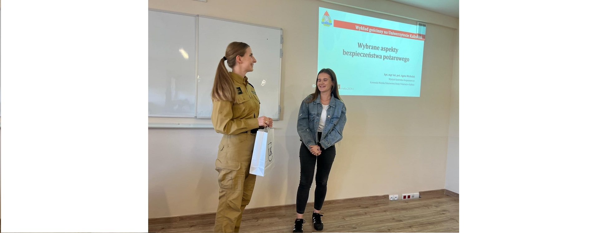 W czwartek 17 października 2024 r. kpt. Agata Michalak przeprowadziła wykład gościnny na temat wybranych aspektów bezpieczeństwa pożarowego na Wydziale Prawa Uniwersytetu Kaliskiego im. Prezydenta Stanisława Wojciechowskiego.