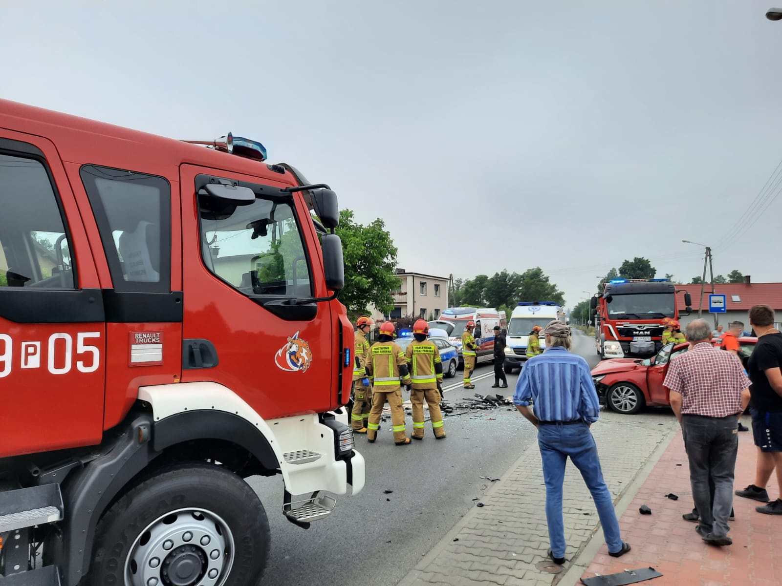 W dn. 23.06.2021r. doszło do wypadku w miejscowości Kalisz ul. Starożytna. Było to zderzenie czołowe dwóch samochodów osobowych Hyundai i30 oraz BMW, które w wyniku zderzenia całkowicie zablokowały drogę powiatową Kalisz - Brzeziny. Działania straży pożarnej polegały na zabezpieczeniu miejsca zdarzenia, udzieleniu kwalifikowanej pierwszej pomocy poszkodowanym. Przybyły ZRM po przebadaniu poszkodowanych zadecydował o zabraniu dwóch osób na dalsze badania do szpitala. Po zakończeniu czynności operacyjnych przez policję i usunięciu pojazdów z jezdni przywrócono ruch na drodze.