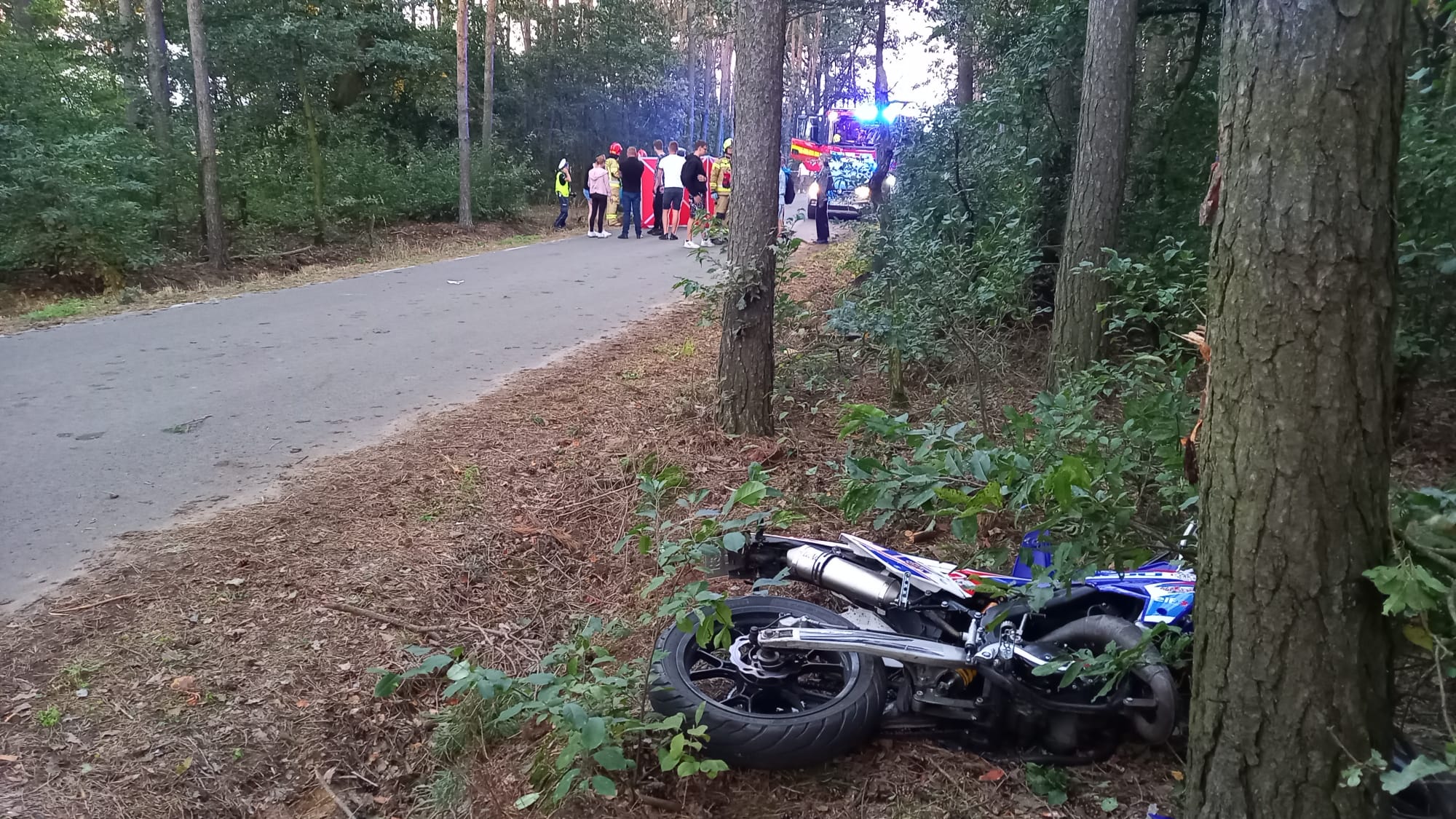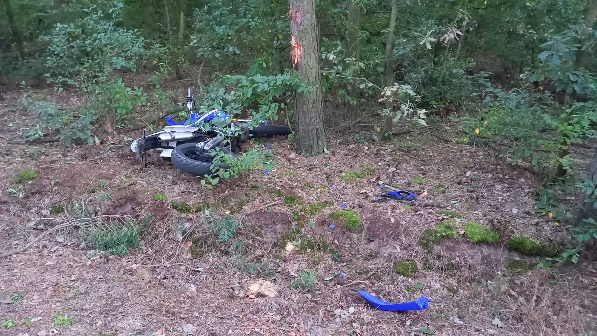 22.09.2024 o godzinie 18:06 do Stanowiska Kierowania KM PSP w Kaliszu wpłynęło telefoniczne zgłoszenie od druhów OSP Koźminek, którzy najechali na wypadek w miejscowości Bogdanów gm. Koźminek. Druhowie stwierdzili, że nieletni motocyklista, który leżał na poboczu wymaga udzielenia pomocy, a jego motocykl znajdował się 25 dalej po drugiej stronie jezdni przy drzewie. Dyżurny SKKM zadysponował zastępy z JRG 1 Kalisz, OSP Koźminek, Policję oraz ZRM.