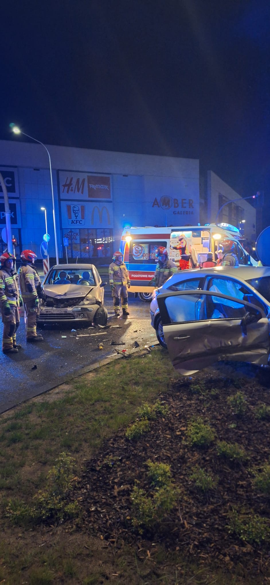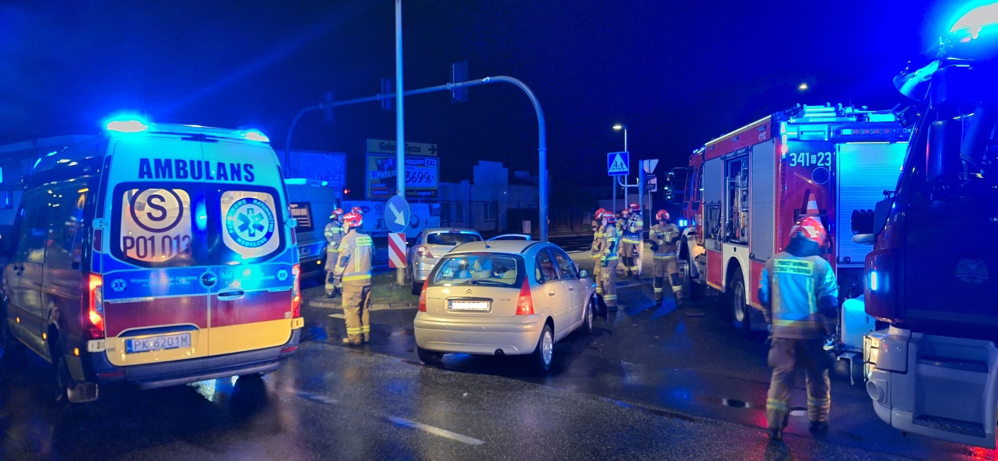 Po przybyciu na miejsce zdarzenia stwierdzono, że doszło do zderzenia dwóch samochodów osobowych, którymi łącznie podróżowały trzy osoby. Dwóch podróżujących wymagało udzielenia pomocy medycznej. Pojazdy biorące udział w zdarzeniu znajdowały się na jezdni, ruch w miejscu zdarzenia odbywał się wahadłowo.