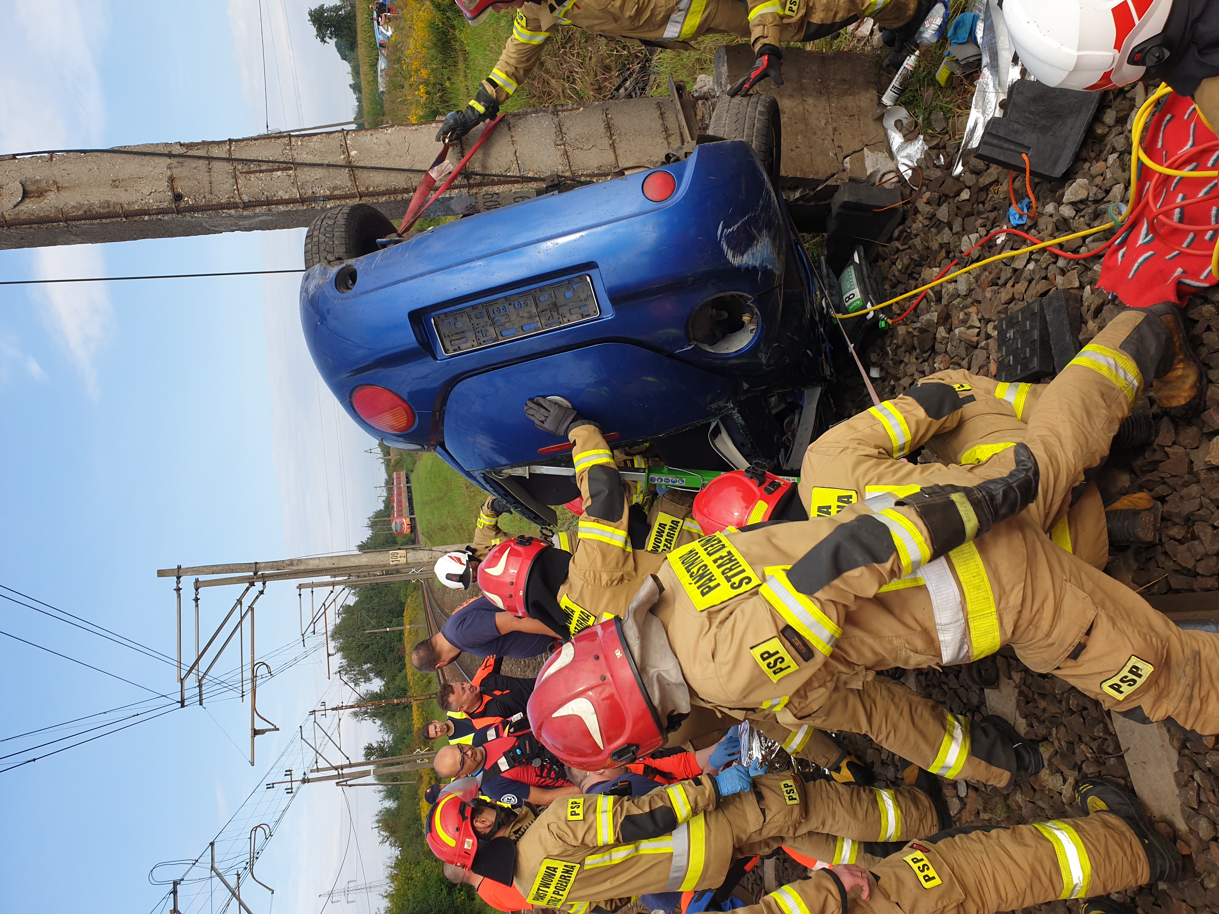 W dniu 3 września o godzinie 9:10 Stanowisko Kierowania Komendanta Miejskiego Państwowej Straży Pożarnej w Kaliszu otrzymało zgłoszenie o zderzeniu pojazdu osobowego i pociągu na przejeździe kolejowym przy ulicy Torowej w Kaliszu. Po przybyciu na miejsce zdarzenia pierwszego zastępu ustalono, że samochód osobowy nie ustąpił pierwszeństwa przejazdu pociągowi osobowemu relacji Warszawa-Poznań Główny na przejeździe kolejowym przy ulicy Torowej w Kaliszu, w wyniku czego doszło do zderzenia. Auto po przybyciu pierwszego zastępu znajdowało się na boku, przyparte do słupa sieci trakcyjnej infrastruktury kolejowej. Wewnątrz pojazdu znajdowała się przytomna kobieta, która uskarżała się na ból. Około 200 metrów dalej stał pociąg osobowy. Kierownik pociągu poinformował, że wśród pasażerów i obsługi nie ma osób poszkodowanych. Zabezpieczono miejsce zdarzenie poprzez ustawienie samochodów pożarniczych na jezdni, wyłączając drogę z ruchu oraz ogrodzono teren działań taśmą ostrzegawczą. Auto ustabilizowano przy pomocy podpór mechanicznych oraz pasów transportowych. Do uwolnienia osoby poszkodowanej wykorzystano poduszki pneumatyczne oraz urządzenia hydrauliczne. Następnie poszkodowaną umieszczono na desce ortopedycznej i przekazano obecnemu na miejscu Zespołowi Ratownictwa Medycznego. Na miejscu zdarzenia wylądował zespół Lotniczego Pogotowia Ratunkowego, którego miejsce lądowania i odlotu zabezpieczały Jednostki Ochrony Przeciwpożarowej. Osoby, które przebywały w pociągu, który uderzył w auto osobowe nie wymagały pomocy medycznej (32 osoby, w tym maszynista i kierownik składu). Osoby te przesiadły się do podstawionego przez PKP pociągu. Przejście osób, przy użyciu podestu zamontowanego w pociągu zabezpieczali ratownicy. Plamy oleju usunięto przy użyciu sorbentu. Następnie Pomoc Drogowa usunęła auto osobowe przy użyciu wysięgnika HDS. Po usunięciu szkła i pozostałości karoserii działania zakończono. Dalsze czynności prowadziła Policja i pracownicy PKP. Na miejscu obecna była Grupa Operacyjna Komendy Miejskiej Państwowej Straży Pożarnej w Kaliszu.