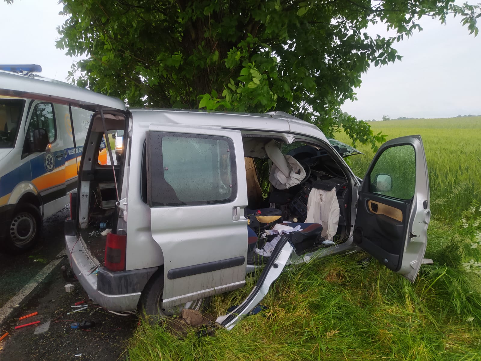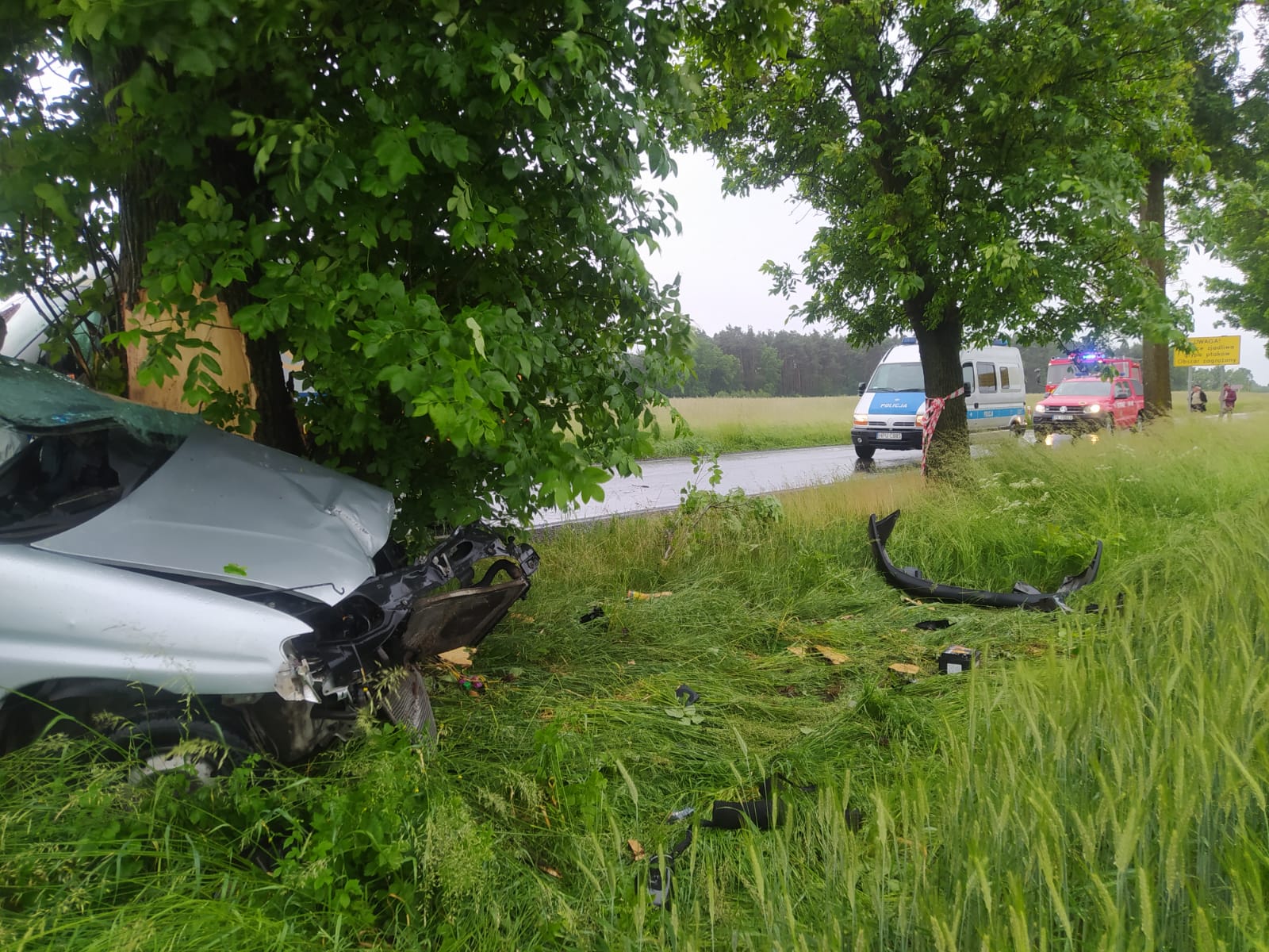 W dniu 12.06.2021r doszło do wypadku w miejscowości Sobiesęki. Przybyły na miejsce zdarzenia pierwszy zastęp straży ustalił, że jadący w kierunku Sobiesęk Citroen Berlingo uderzył w drzewo od strony kierowcy. Kierowca pojazdu był nieprzytomny oraz zakleszczony. Zespół Ratownictwa Medycznego znajduje się na miejscu wypadku.