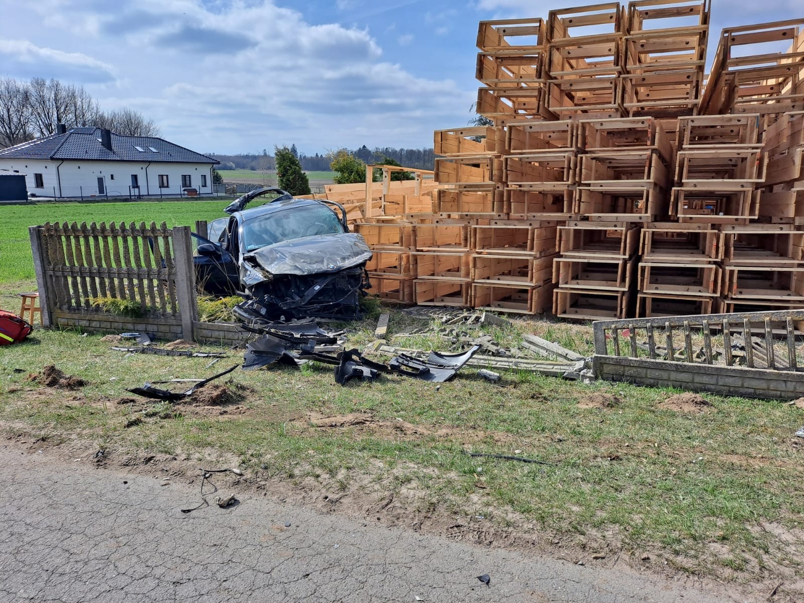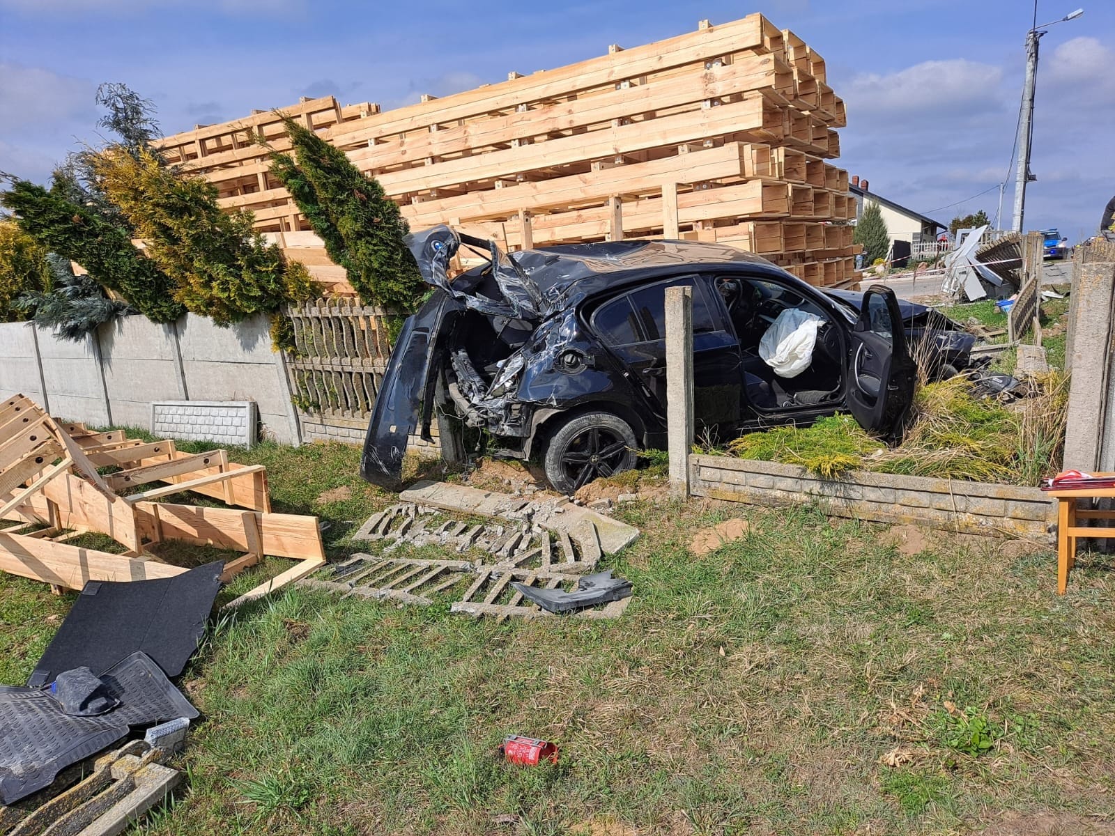 Po przybyciu na miejsce pierwszego zastępu straży pożarnej stwierdzono że doszło do zderzenia dwóch pojazdów osobowych na prostym odcinku drogi gminnej w miejscowości Swoboda. Jeden z pojazdów znajdował się na poboczu drogi, natomiast drugi z pojazdów uderzył w skrzynki energetyczne, betonowy płot a także palety, które znajdowały się na terenie pobliskiego tartaku.