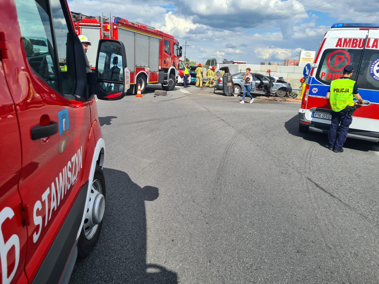 W dniu 10.08.2023 r. o godzinie 14:06 do Stanowiska Kierowania Komendanta Miejskiego PSP w Kaliszu wpłynęło zgłoszenie o zderzeniu trzech samochodów osobowych na drodze krajowej nr 25 w miejscowości Stary Kiączyn. Na miejsce zdarzenia zadysponowano dwa zastępy PSP, samochód operacyjny z dowódcą Jednostki Ratowniczo-Gaśniczej nr 1 oraz dwa zastępy z OSP Stawiszyn i OSP Zbiersk. Po dojeździe na miejsce zdarzenia stwierdzono, że doszło do zderzenia bocznego dwóch samochodów osobowych na skutek czego uderzony został również trzeci samochód osobowy. Samochodami łącznie podróżowało 5 osób. Osoby biorące udział w zdarzeniu znajdowały się pod opieką Zespołu Ratownictwa Medycznego który przybył na miejsce zdarzenia przed pierwszymi zastępami straży pożarnej. Działania zastępów polegały na pomoc ZRM w ewakuacji jednej osoby poszkodowanej z pojazdu, zabezpieczeniu miejsca zdarzenia oraz odłączeniu akumulatorów. Dalsze działania polegały na kierowaniu ruchem pojazdów do czasu zakończenia czynności prowadzonych przez obecną na miejscu Policję. Następnie usunięto uszkodzone pojazdy z pasa drogowego oraz zebrano pozostałości elementów karoserii oraz płynów eksploatacyjnych.