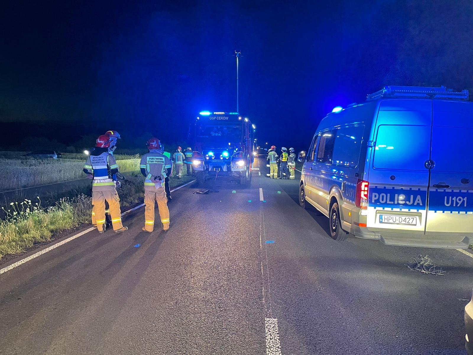 Dnia 25 lipca br. o godzinie 21:09 do Stanowiska Kierowania Komendanta Miejskiego Państwowej Straży Pożarnej w Kaliszu wpłynęło zgłoszenie o wypadku drogowym na drodze wojewódzkiej nr 470 w miejscowości Szadek, gm. Ceków Kolonia. Po dojeździe pierwszych zastępów na miejsce zdarzenia stwierdzono, że doszło do wypadku pojazdu osobowego HONDA CIVIC. Pojazd wypadł z drogi, uderzył w przepust drogowy i dachował. Samochodem podróżowały 4 osoby, które w momencie przyjazdu służb znajdowały się poza pojazdem i były przytomne. Na miejscu znajdowała się również karetka transportowa, która najechała na zdarzenie i udzielała pomocy poszkodowanym.
