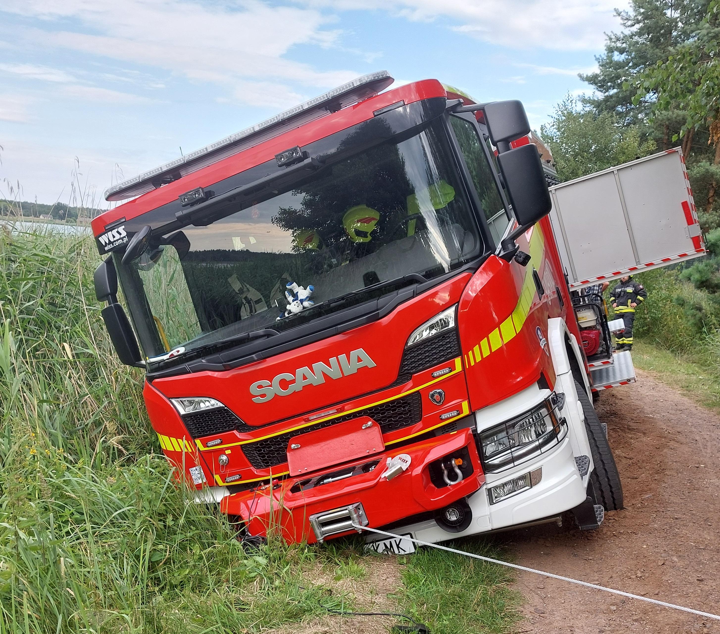 W trakcie prowadzonych działań na zbiorniku wodnym po zwodowaniu łodzi z OSP Koźminek jeden z zastępów OSP Koźminek podczas przemieszczania się linią brzegową osunął się i pochylił na prawą stronę w kierunku zbiornika wodnego. Przybyła na miejsce pomoc drogowa wyciągnęła pojazd.