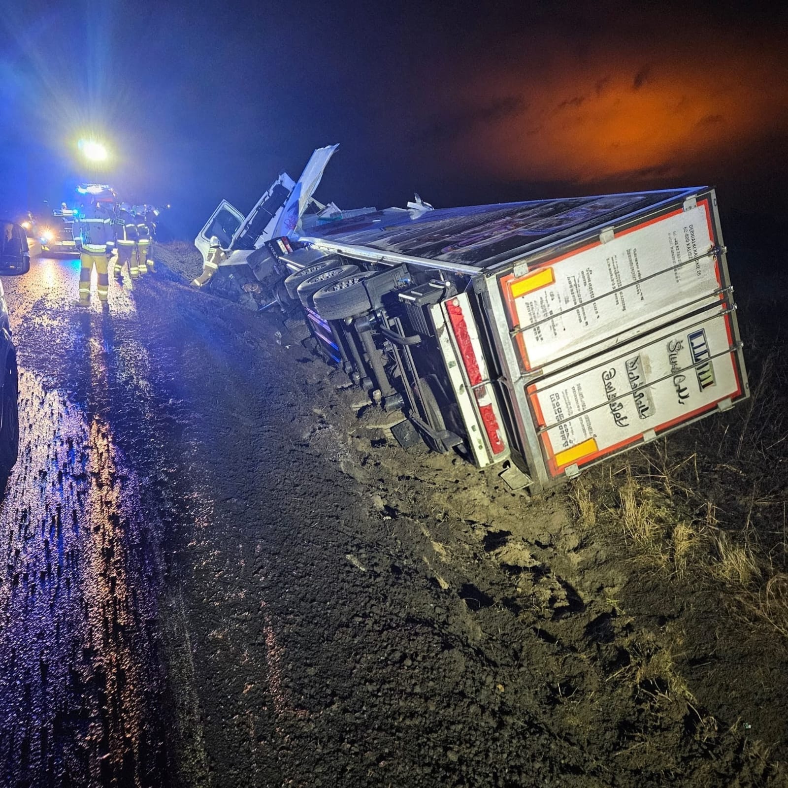 23.02.2026, około godziny 3:30 Kaliska Straż Pożarna otrzymała zgłoszenie o zdarzeniu drogowym w miejscowości Piątek Mały w podkaliskiej gminie Stawiszyn. Na drodze krajowej nr 25, na jej 288 kilometrze, samochód ciężarowy zjechał z drogi i wpadł do rowu.