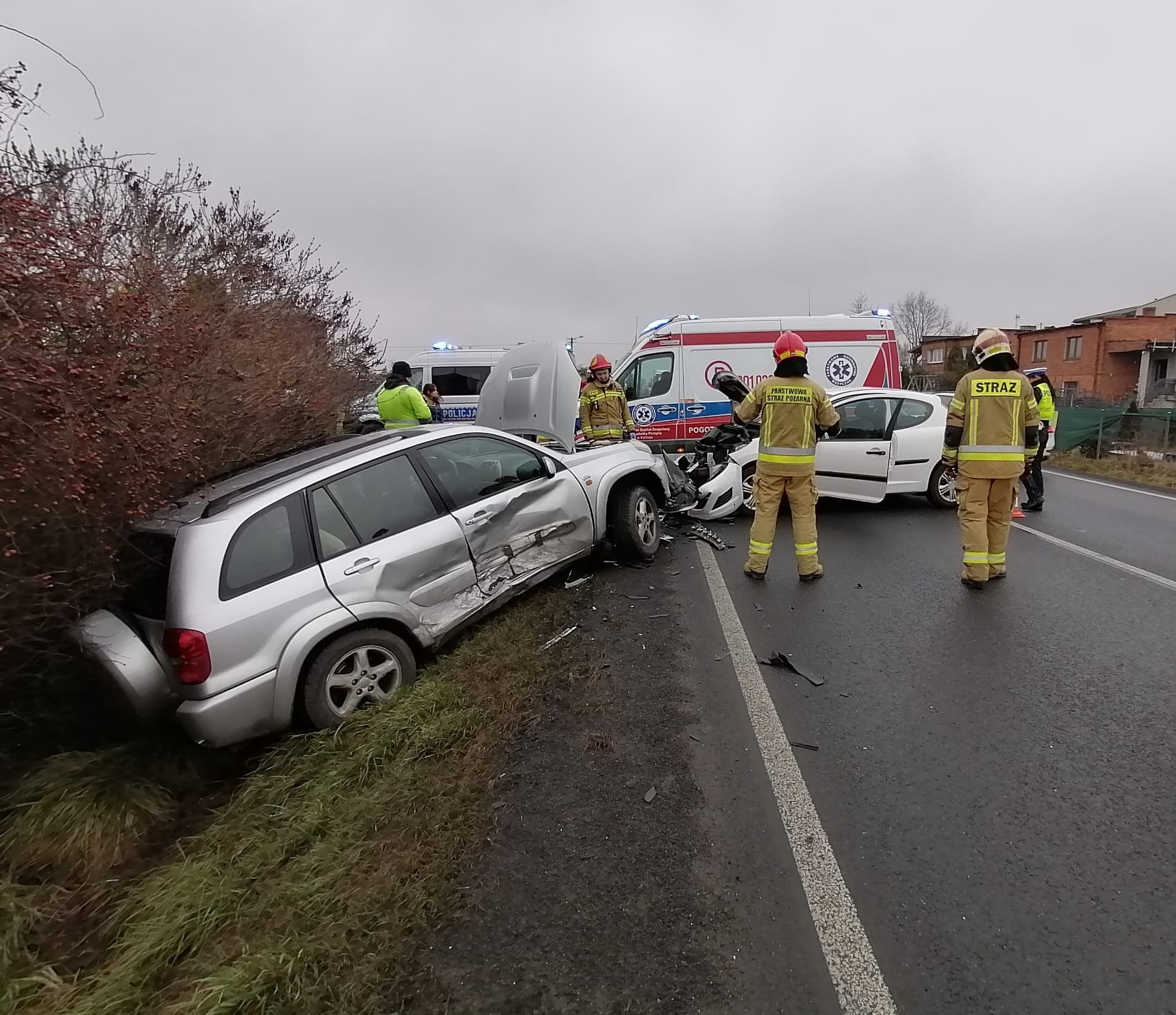 W dniu 25.01.2023 r. o godzinie 11:49 do Stanowiska Kierowania Komendanta Miejskiego PSP w Kaliszu wpłynęło zgłoszenie o zderzeniu dwóch samochodów osobowych na drodze krajowej nr 25 w miejscowości Nowy Kiączyn. Na miejsce zdarzenia zadysponowano dwa zastępy PSP z Jednostki Ratowniczo-Gaśniczej nr 1 oraz dwa zastępy z OSP Stawiszyn i OSP Zbiersk. Po dojeździe na miejsce zdarzenia stwierdzono, że doszło do zderzenia bocznego dwóch samochodów osobowych którymi podróżowały łącznie trzy osoby, w tym jedno dziecko. W wyniku zderzenia jedno z aut wypadło z drogi do przydrożnego rowu, drugie z nich znajdowało się na jezdni. Osoby biorące udział w zdarzeniu znajdowały się pod opieką Zespołu Ratownictwa Medycznego który przybył na miejsce zdarzenia przed pierwszymi zastępami straży pożarnej. Działania zastępów polegały na zabezpieczeniu miejsca zdarzenia oraz odłączeniu akumulatorów. Dalsze działania polegały na kierowaniu ruchem pojazdów do czasu zakończenia czynności prowadzonych przez obecną na miejscu Policję. Następnie usunięto uszkodzone pojazdy z pasa drogowego oraz uprzątnięto pozostałości elementów karoserii oraz płynów eksploatacyjnych. Żadna z osób biorących udział w zdarzeniu nie wymagała hospitalizacji w związku z czym zdarzenie zakwalifikowano jako kolizję. Działania zakończono po ok. 40 minutach.