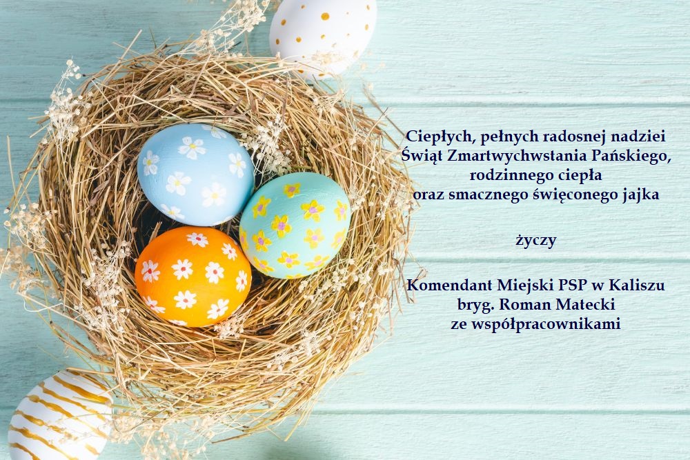Życzenia Wielkanocne Komendanta Miejskiego Państwowej Straży Pożarnej w Kaliszu. 17.04.2025 Zdjęcia (1) Pokaż zdjęcie 1 z galerii.