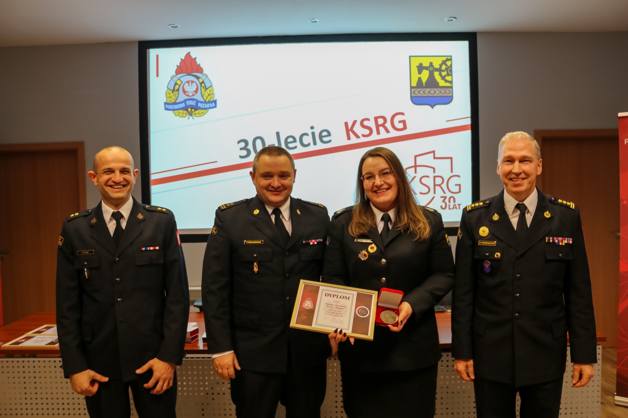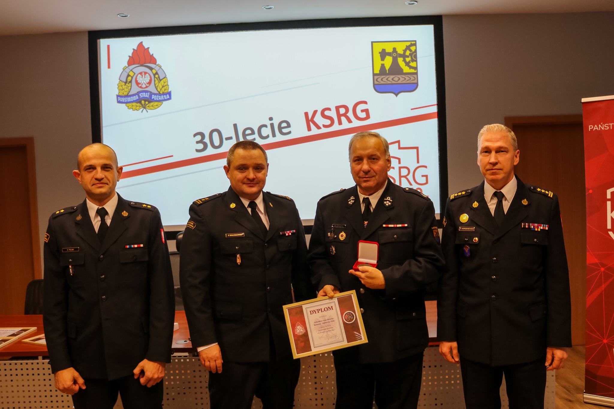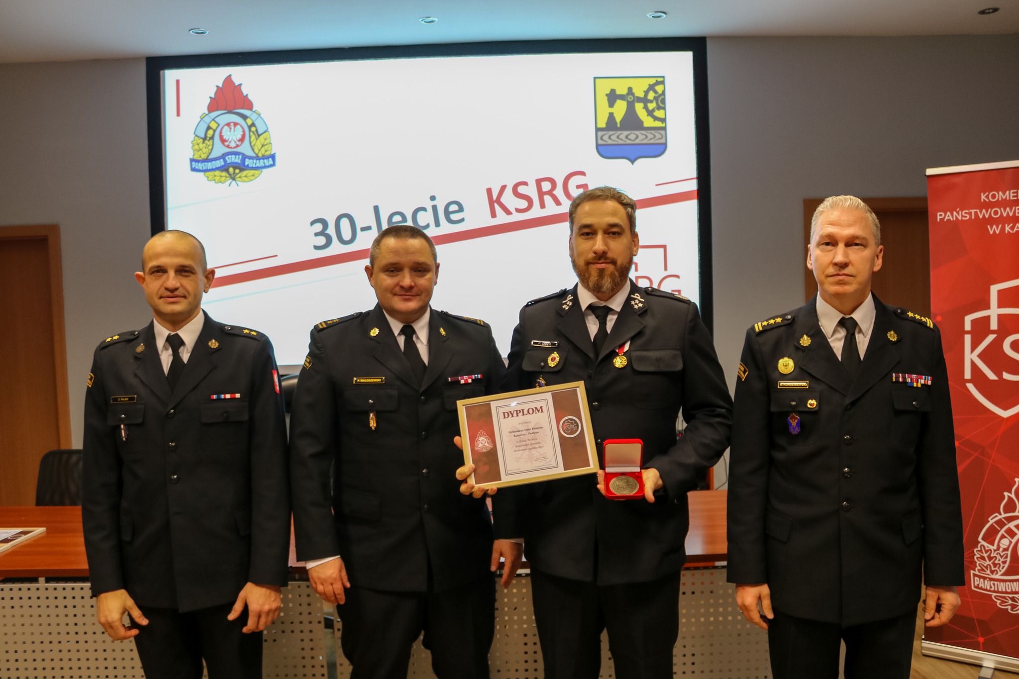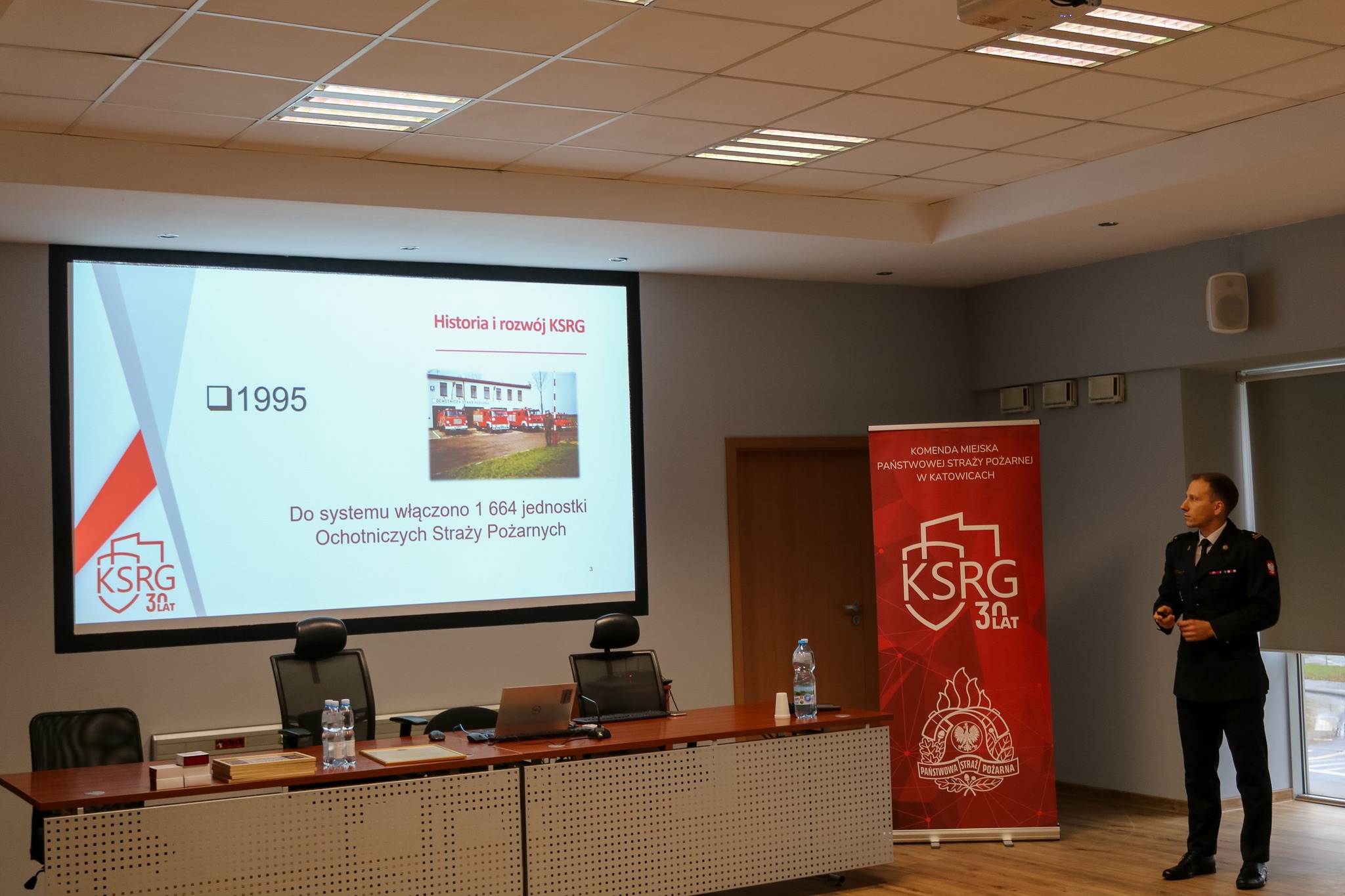 Z okazji jubileuszu 30-lecia KSRG, Naczelnik Wydziału Operacyjno-Szkoleniowego Komendy Miejskiej PSP w Katowicach mł. bryg. Mateusz Pyrzanowski, przedstawił prezentację dotyczącą historii KSRG oraz jego rozwoju na przestrzeni ostatnich 30 lat, a także nt. działań ratowniczych realizowanych przez Komendę Miejską PSP w Katowicach oraz jednostki Ochotniczych Straży Pożarnych z terenu miasta.