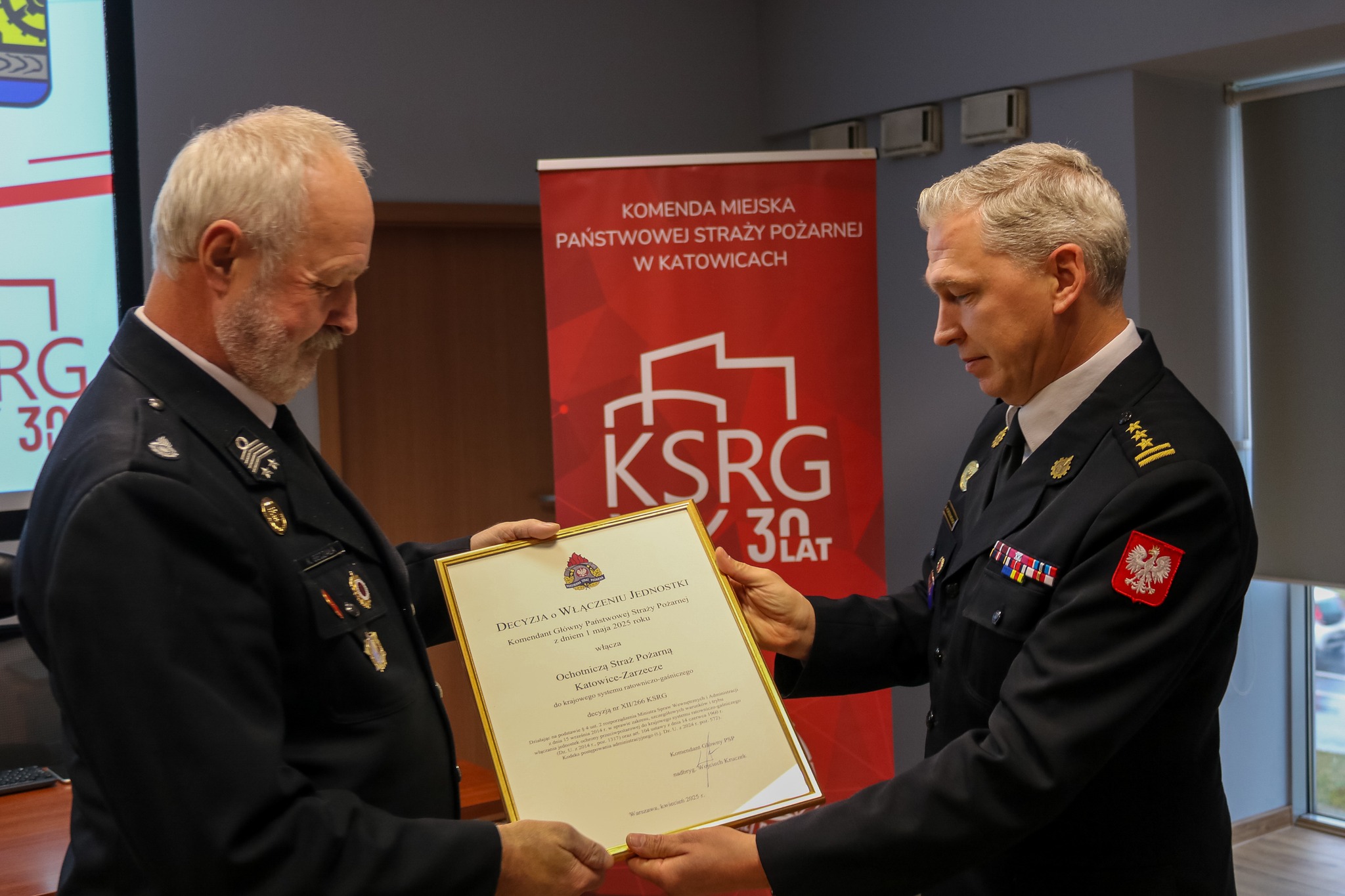 27 października 2025 r. odbyło się spotkanie z przedstawicielami Ochotniczych Straży Pożarnych z terenu miasta Katowice z okazji 30-lecia utworzenia Krajowego Systemu Ratowniczo-Gaśniczego (KSRG).