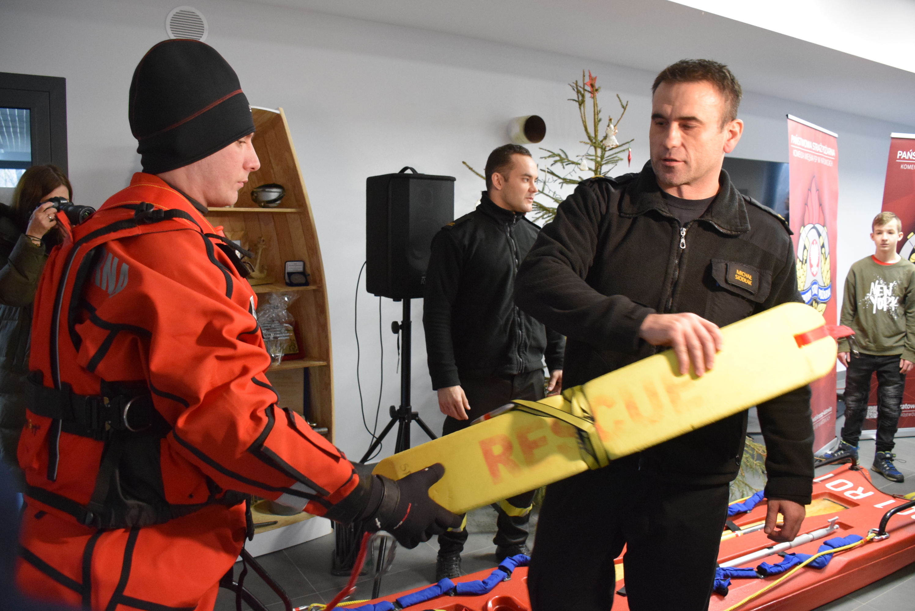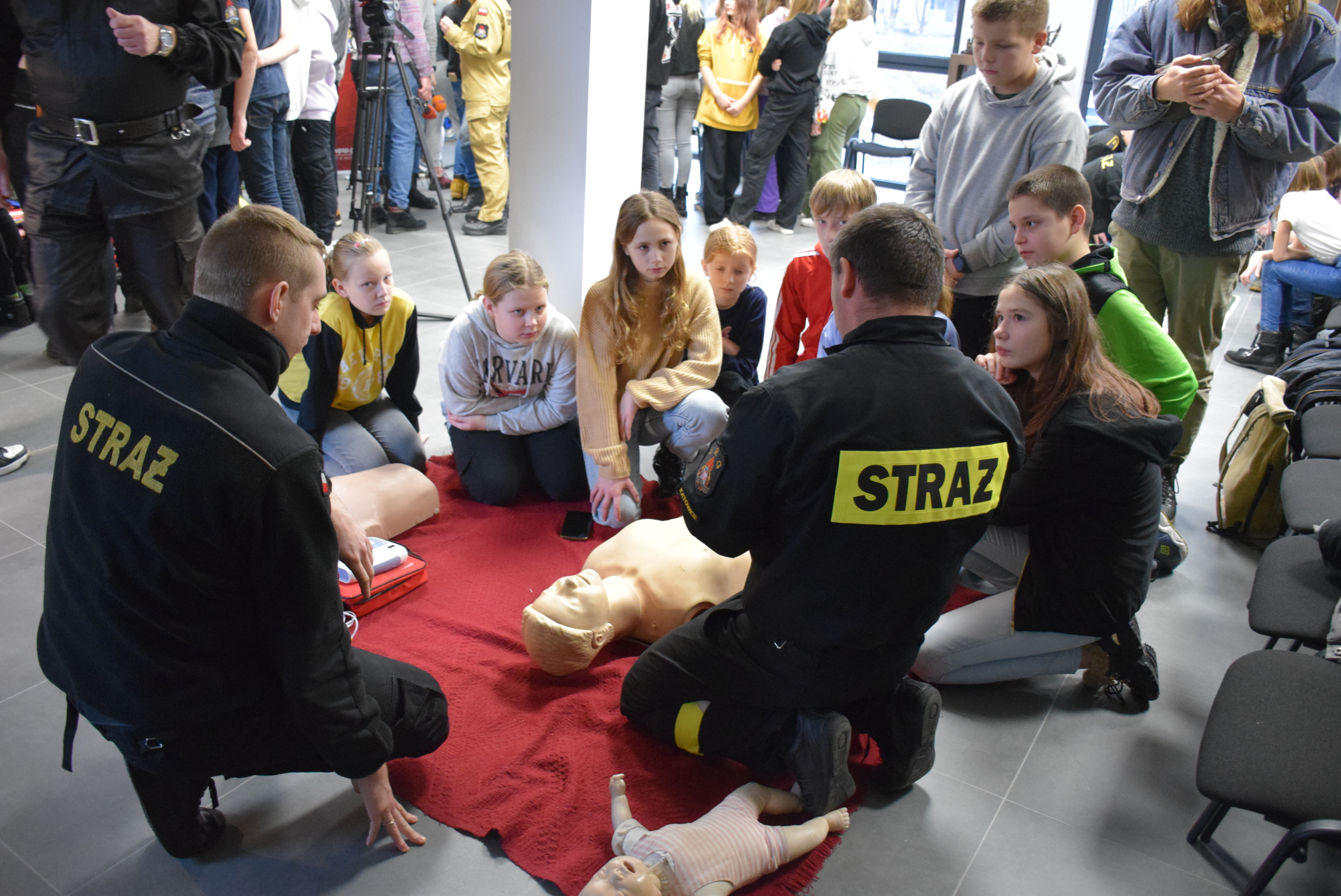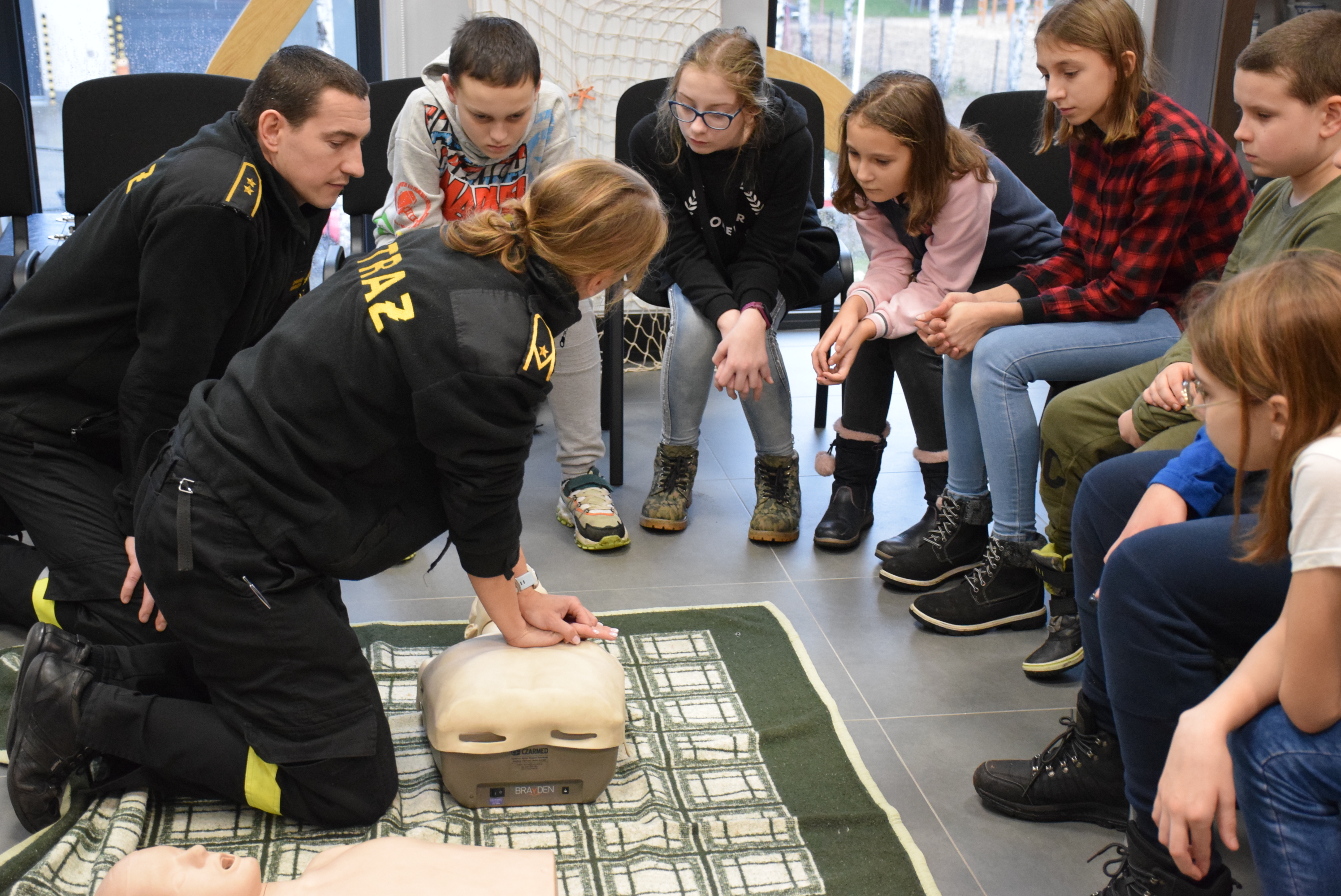 Młodzież biorąca udział w spotkaniu miała okazję zobaczyć sprzęt wykorzystywany podczas działań z zakresu ratownictwa wodnego i lodowego. Strażacy omówili również sposoby samodzielnego wydostania się z przerębli. Każdy z uczestników spotkania otrzymał krótki instruktarz udzielania pierwszej pomocy, a swoje umiejętności z zakresu resuscytacji krążeniowo – oddechowej z użyciem AED mógł przetestować na fantomach.