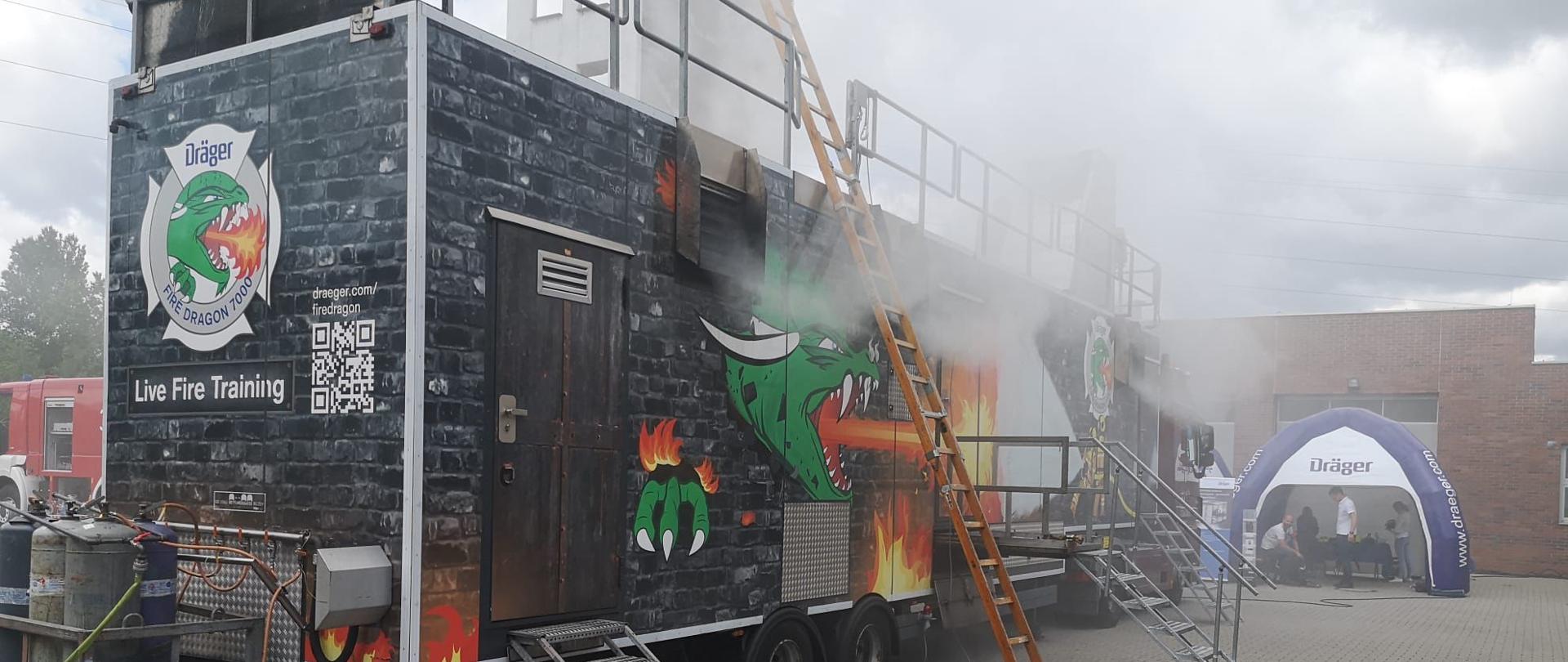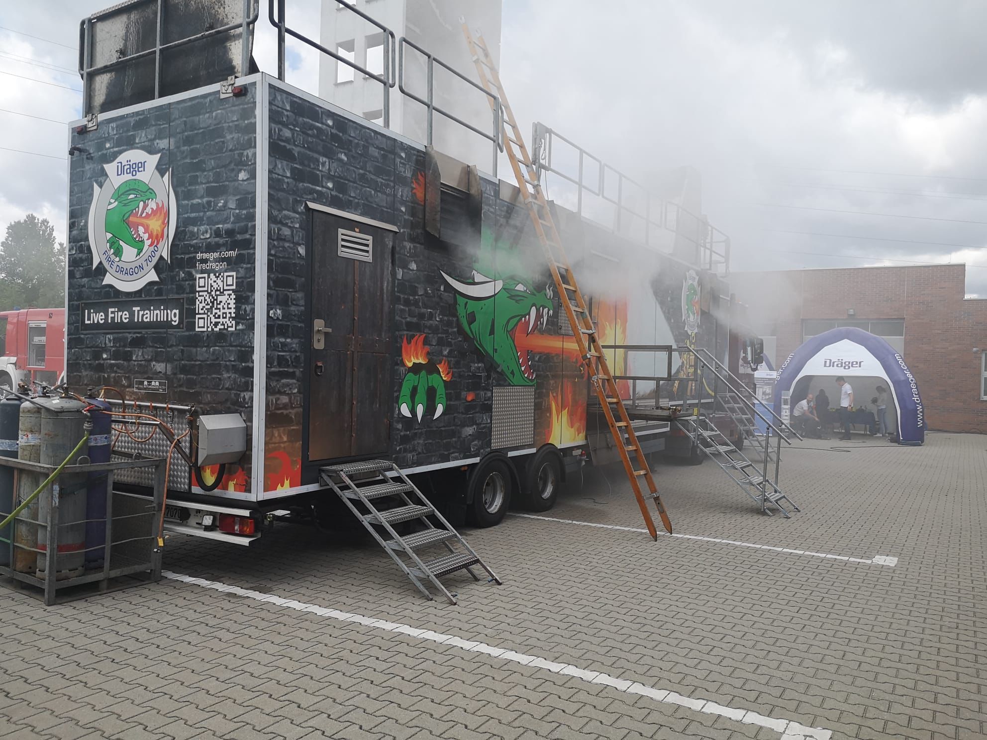 W dniu 14.06.2022 r. na terenie Jednostki Ratowniczo-Gaśniczej nr 1 w Katowicach odbyło się szkolenie z zakresu gaszenia pożarów wewnętrznych z wykorzystaniem komory ogniowej na paliwo gazowe - Fire Dragon 7000, marki Drager. W szkoleniu brali udział zarówno funkcjonariusze Państwowej Straży Pożarnej jak i druhowie z Ochotniczych Straży Pożarnych miasta Katowice. Warunki panujące w trenażerze odzwierciedlały warunki pracy z jakimi strażacy mogą się spotkać podczas działań związanych z pożarami mającymi miejsce w obiektach budowlanych.