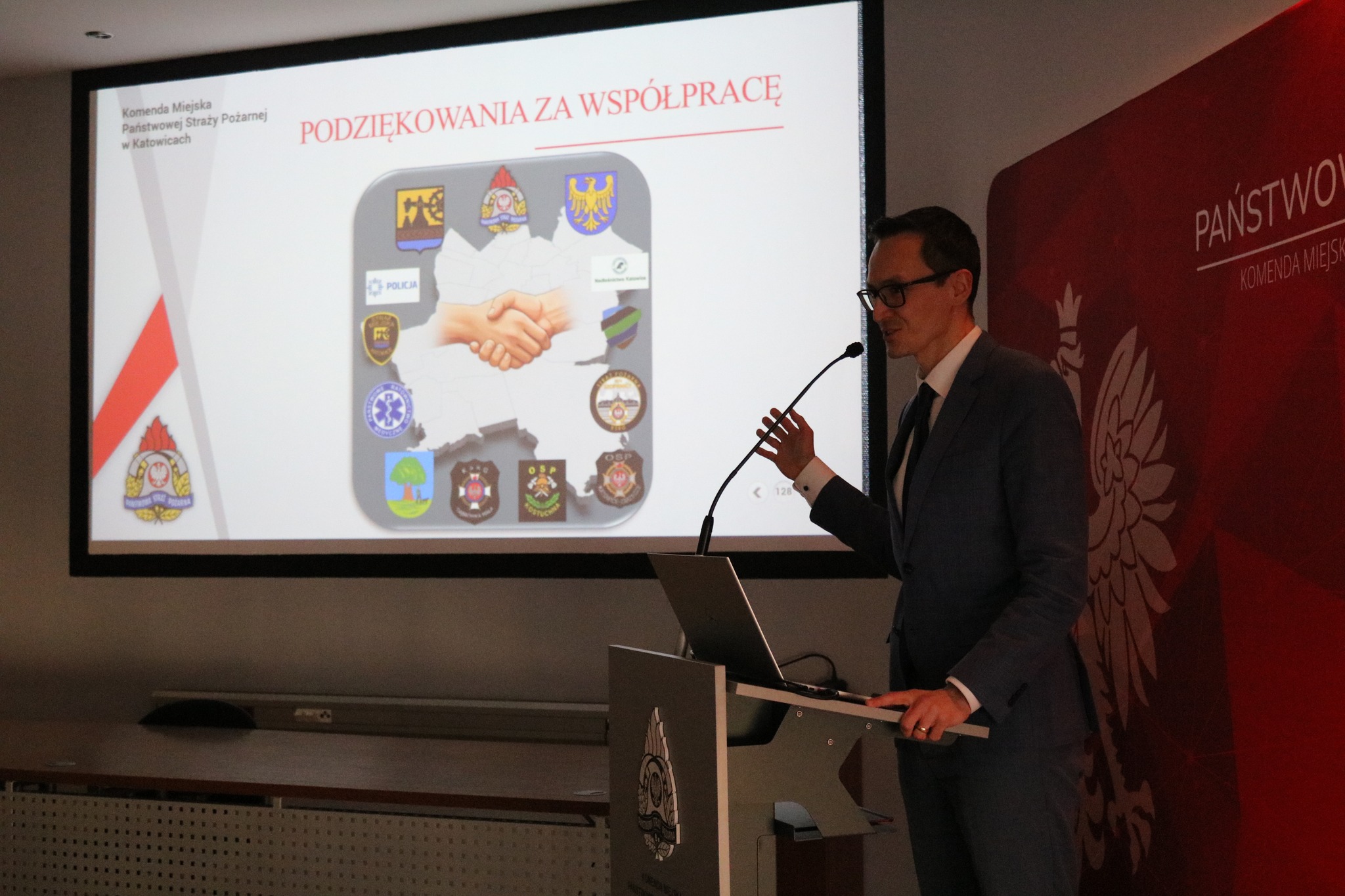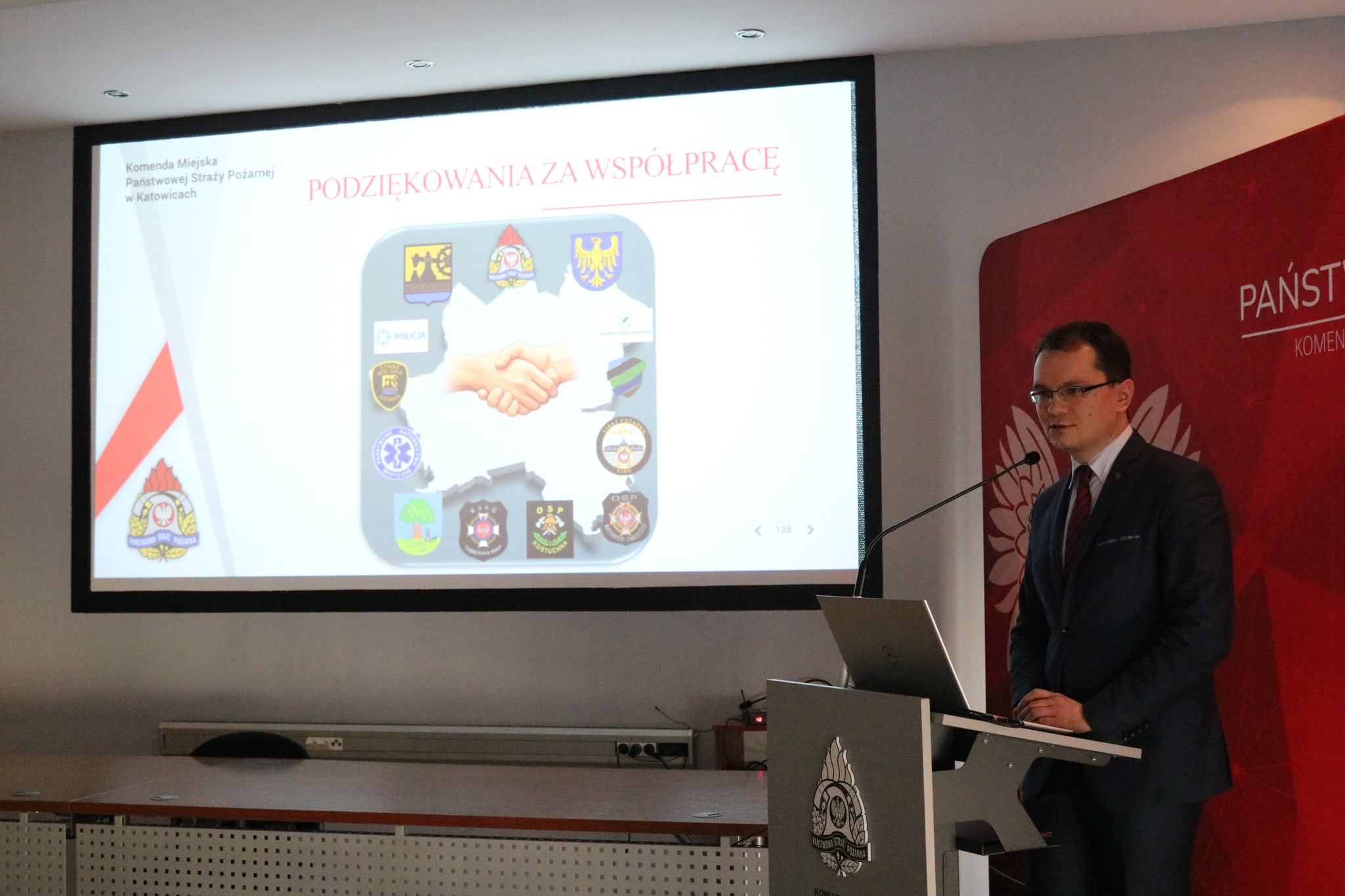 W dalszej części spotkania głos zabrali zaproszeni goście: Dyrektor Biura Wojewody, Pan Damian Mirczak, Wiceprezydent Miasta Katowic, Pan Maciej Stachura oraz Śląski Komendant Wojewódzki Państwowej Straży Pożarnej w Katowicach Pan st. bryg. Damian Legierski.