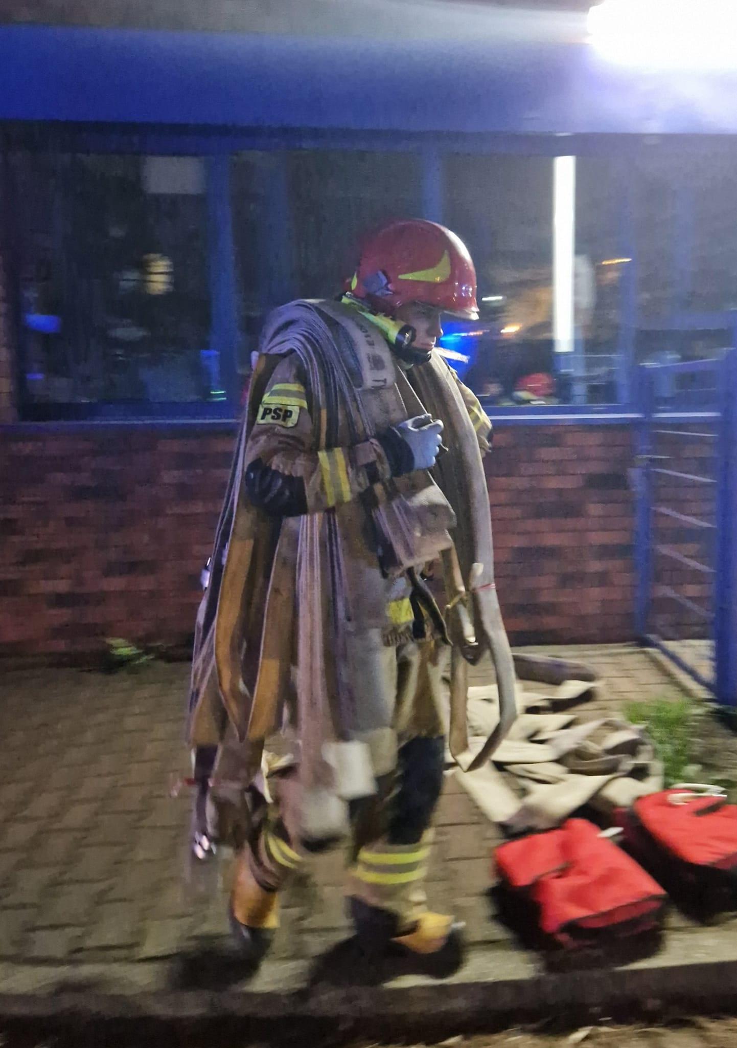 W trakcie rozpoznania ustalono, że w przestrzeni objętej pożarem magazynowane były hulajnogi elektryczne oraz baterie służące do ich zasilania.