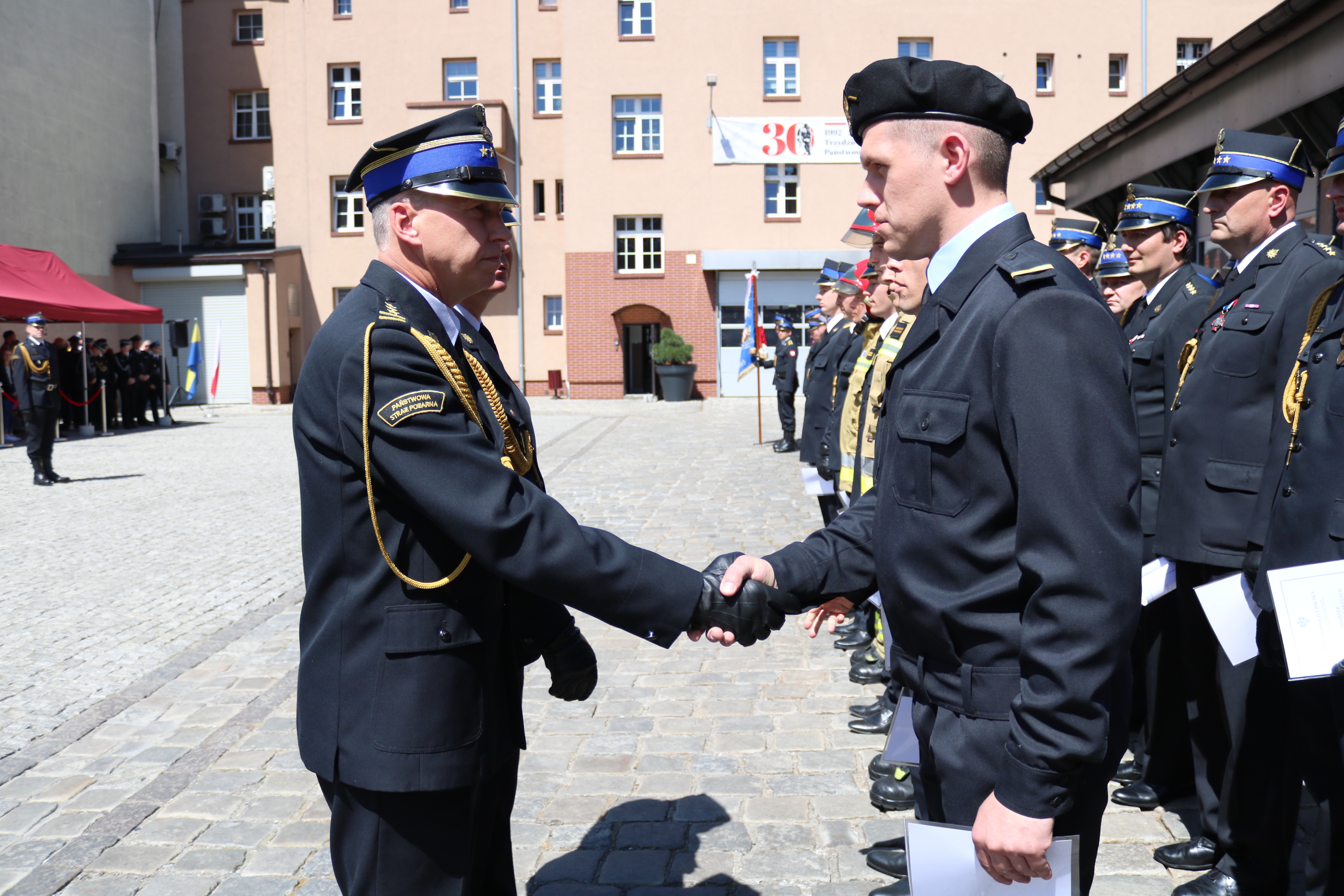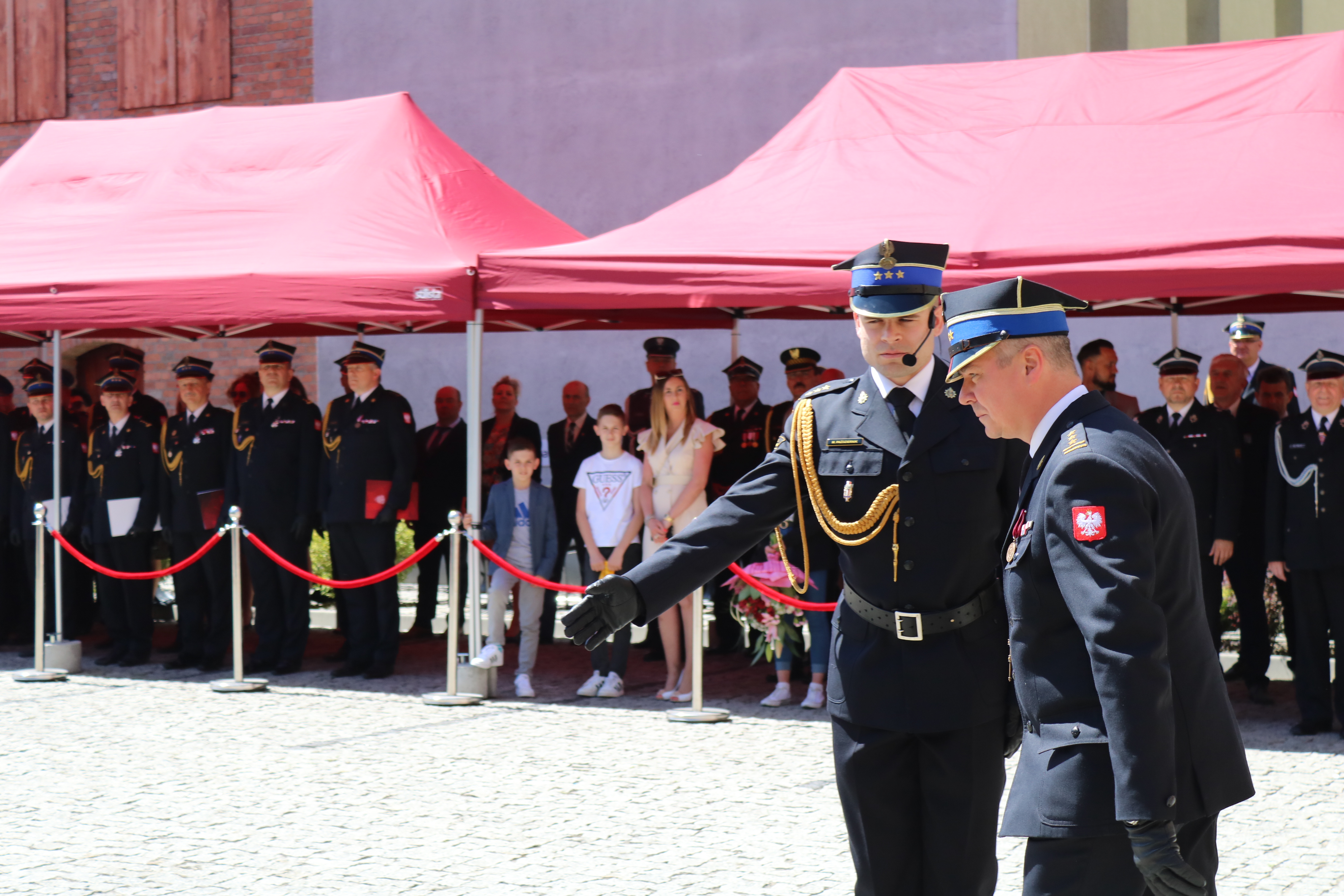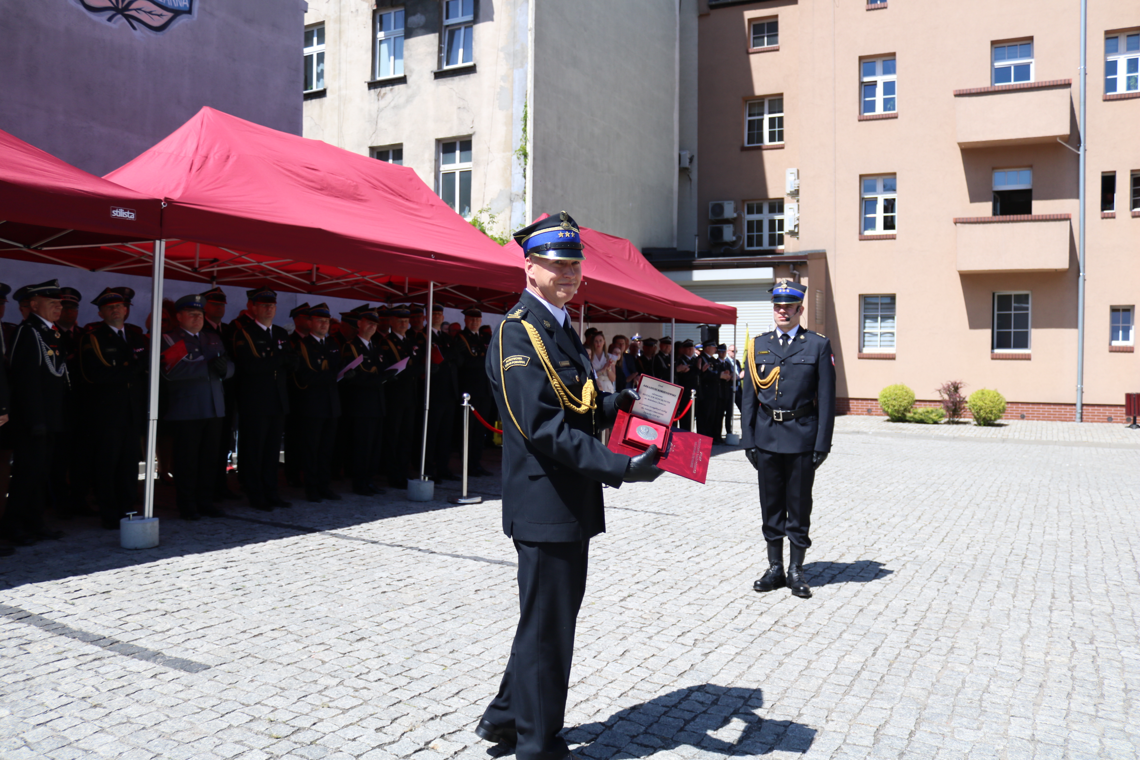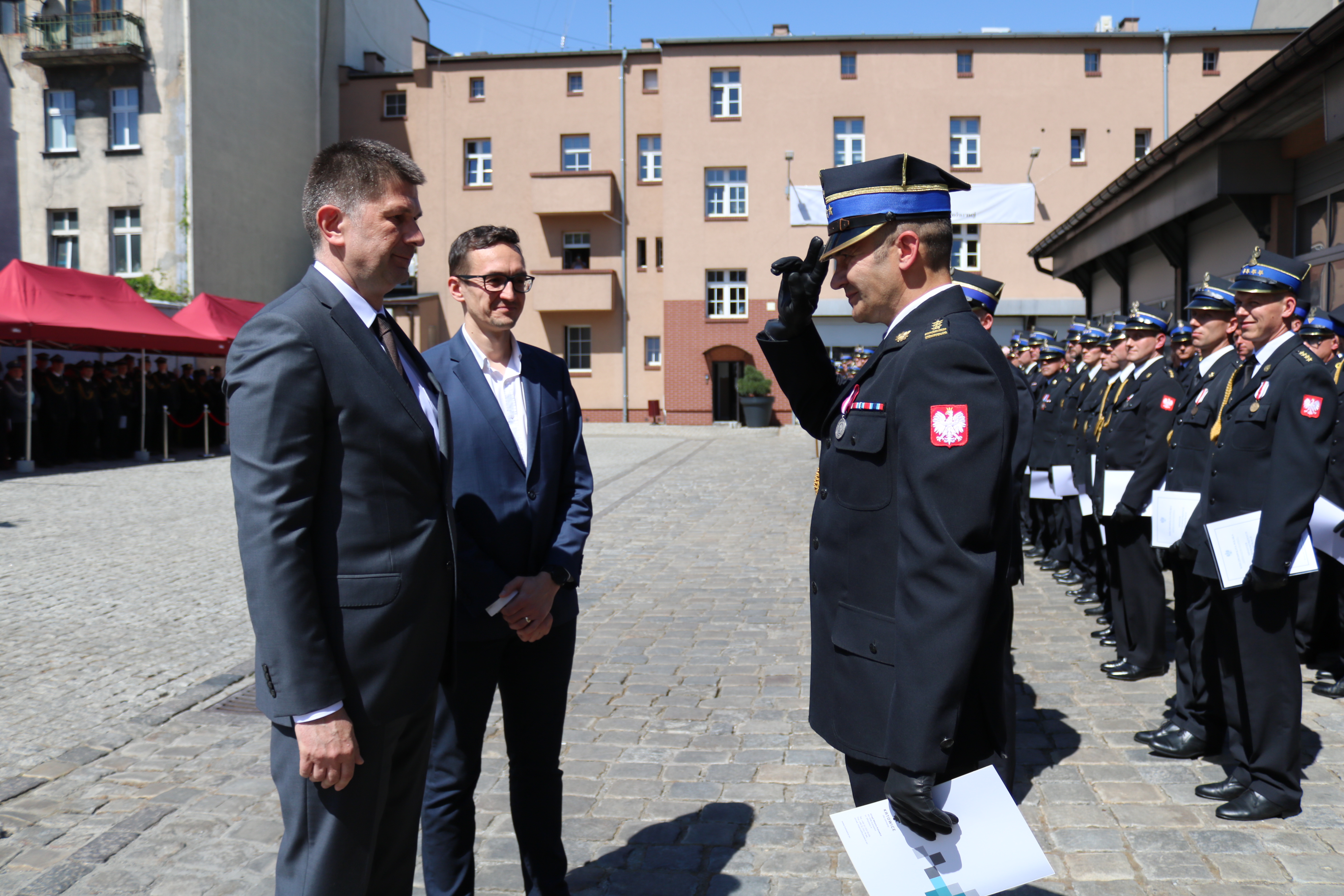Zastępca Śląskiego Komendanta Wojewódzkiego st. bryg. Mirosław Synowiec również serdecznie podziękował przedstawicielom władz samorządowych za przybycie i wsparcie dla straży pożarnej oraz druhom OSP za zaangażowanie. Na koniec wystąpienia pogratulował awansowanym i wyróżnionym funkcjonariuszom. Życzył strażakom wszystkiego dobrego oraz „wsparcia św. Floriana”.