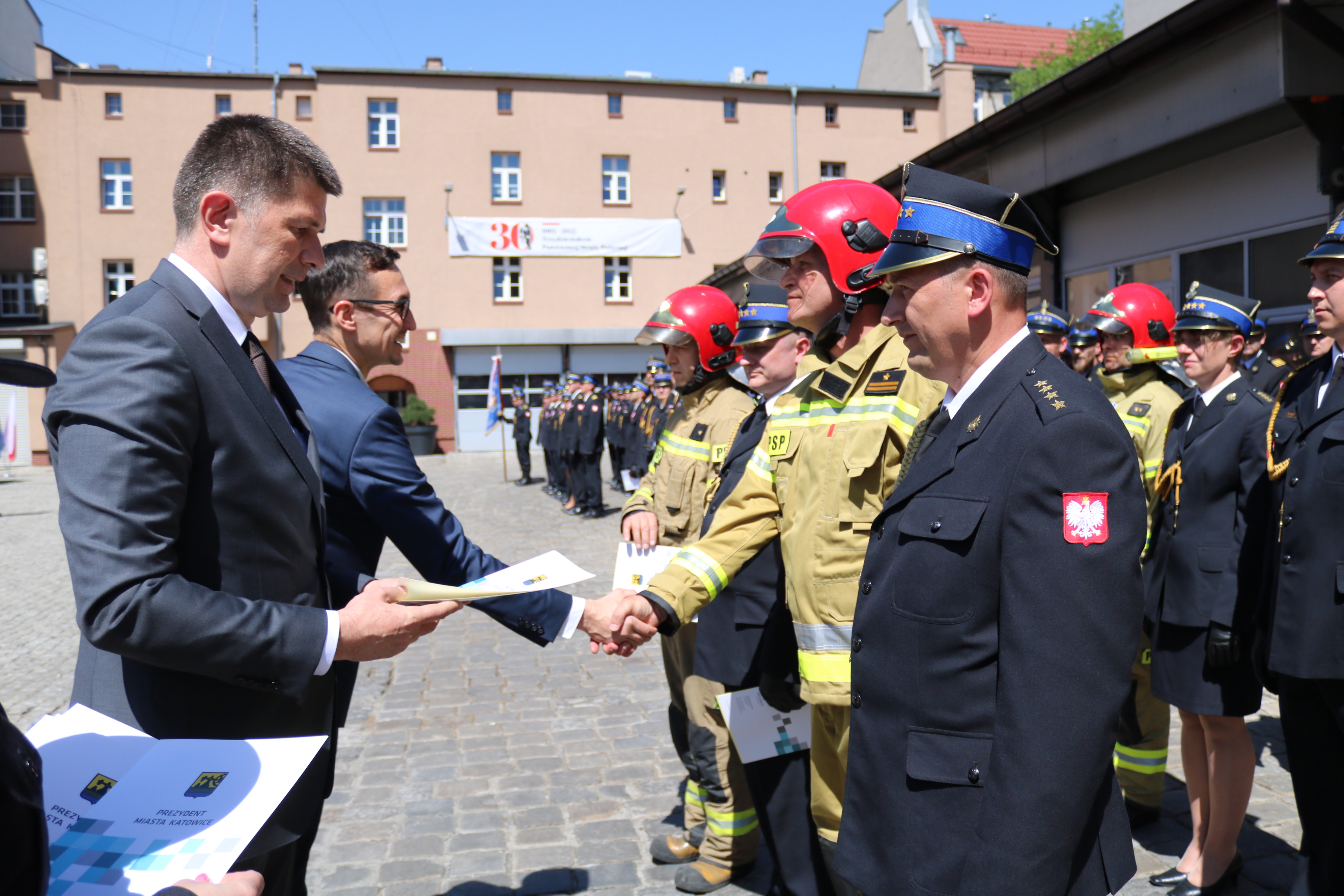 Głos zabrał także Wiceprezydent Miasta Katowice Bogumił Sobula, który w trakcie przemowy złożył życzenia wszystkim strażakom i pogratulował awansów, nagród i wyróżnień, a także podziękował za trud włożony w realizację codziennych obowiązków służbowych.
