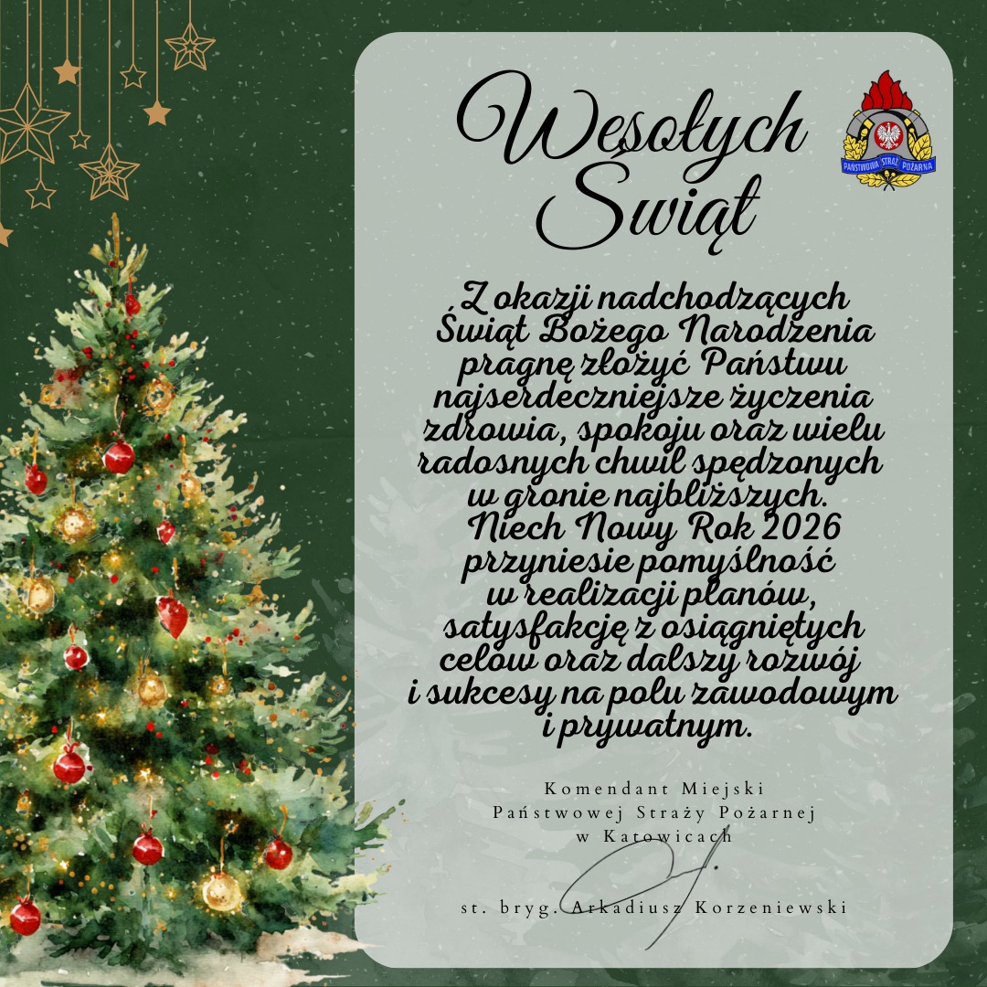 Życzenia świąteczne Komendanta Miejskiego PSP w Katowicach