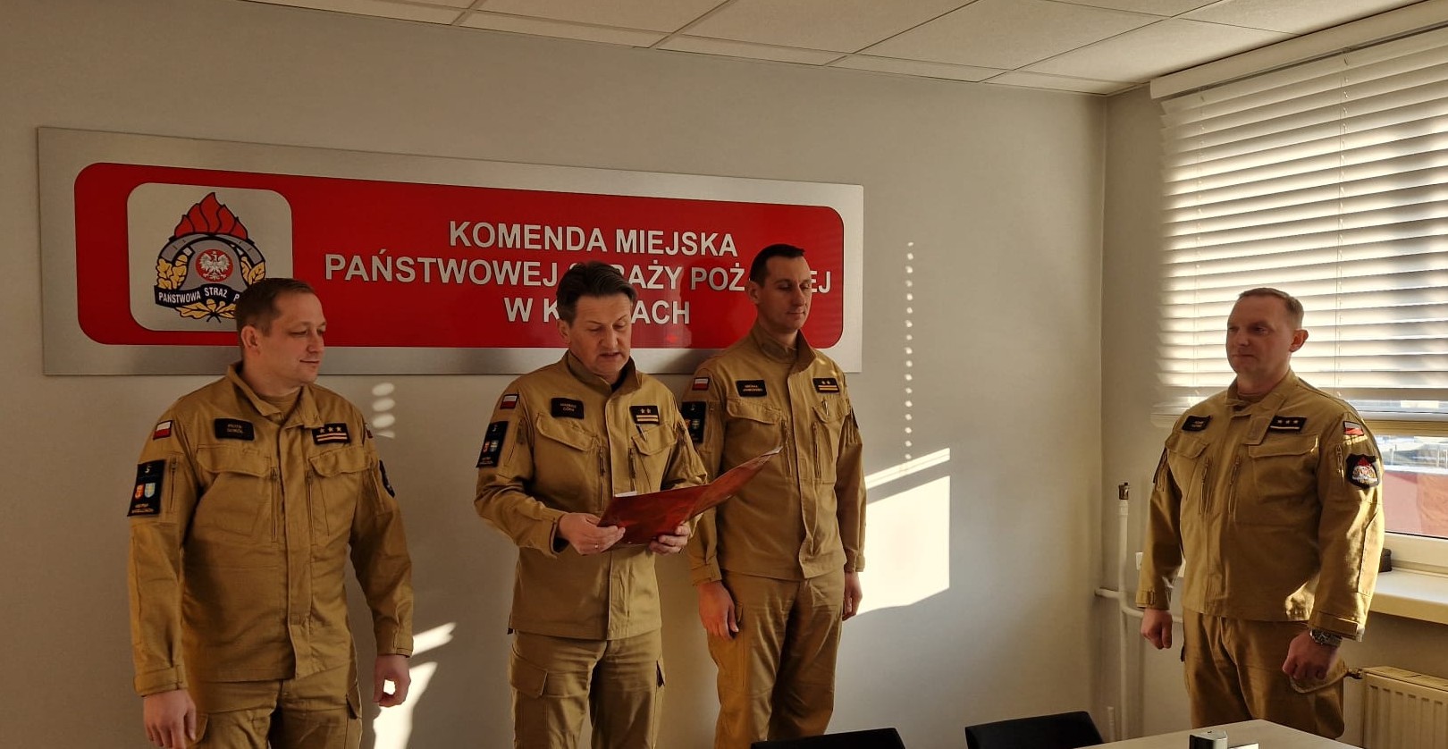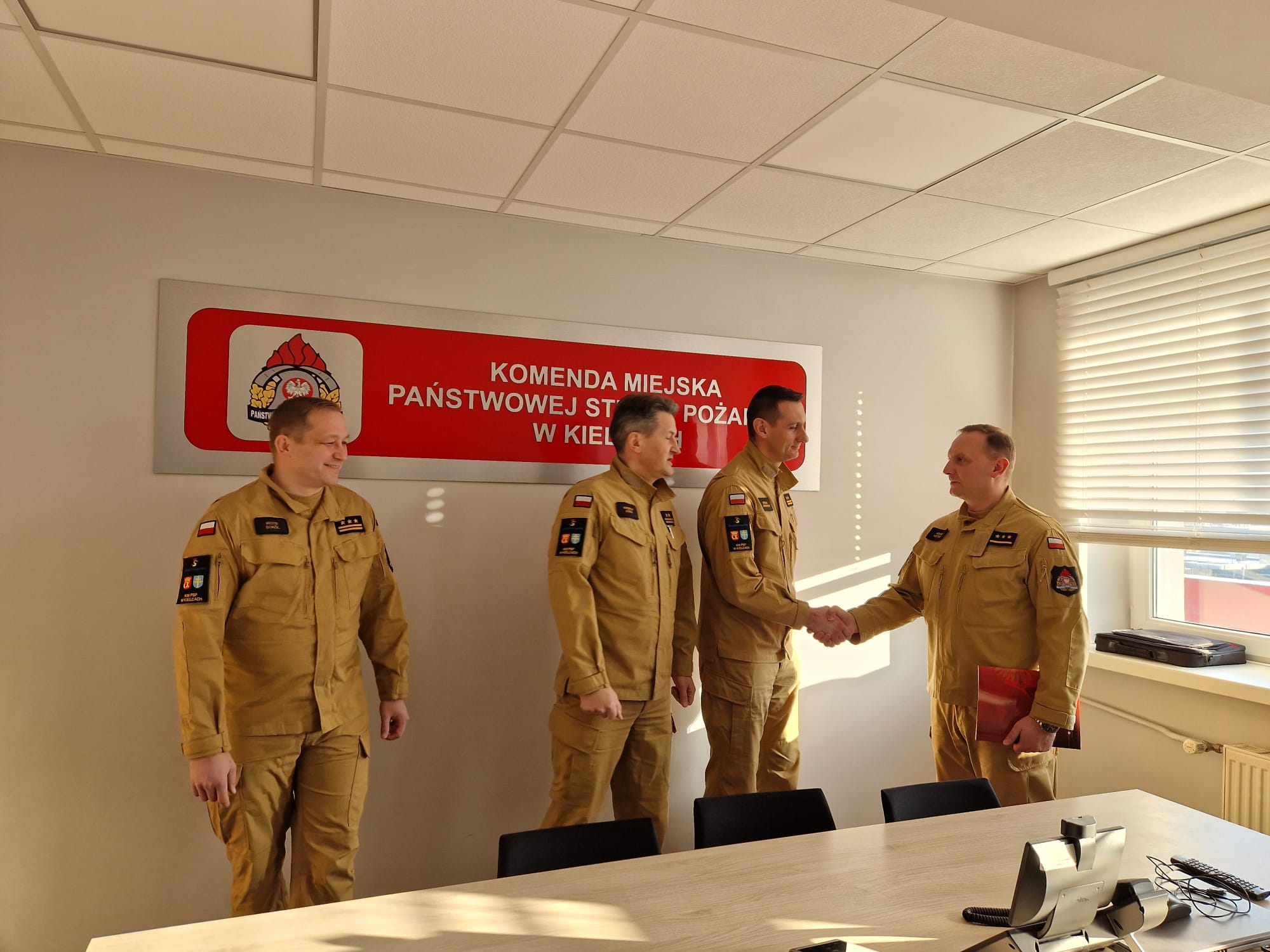 3 lutego 2025 roku pracownicy cywilni i funkcjonariusze Komendy Miejskiej Państwowej Straży Pożarnej w Kielcach zebrali się w sali narad aby przywitać nowego zastępcę naczelnika Wydziału Operacyjno-Szkoleniowego.