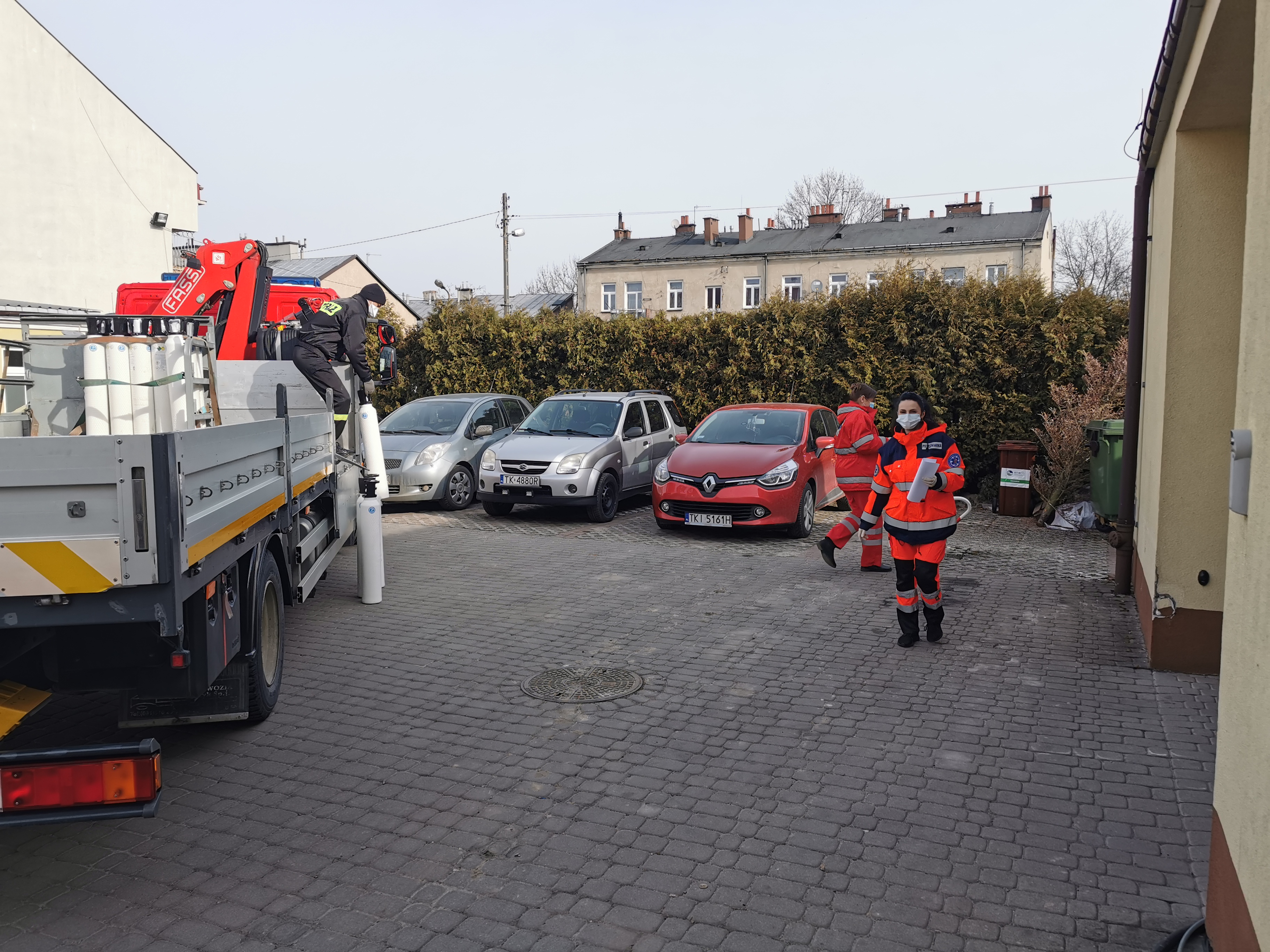 W transport butli z tlenem zaangażowani są żołnierze Wojskowej Obrony Terytorialnej oraz strażacy z JRG PSP Nr 1 w Kielcach.