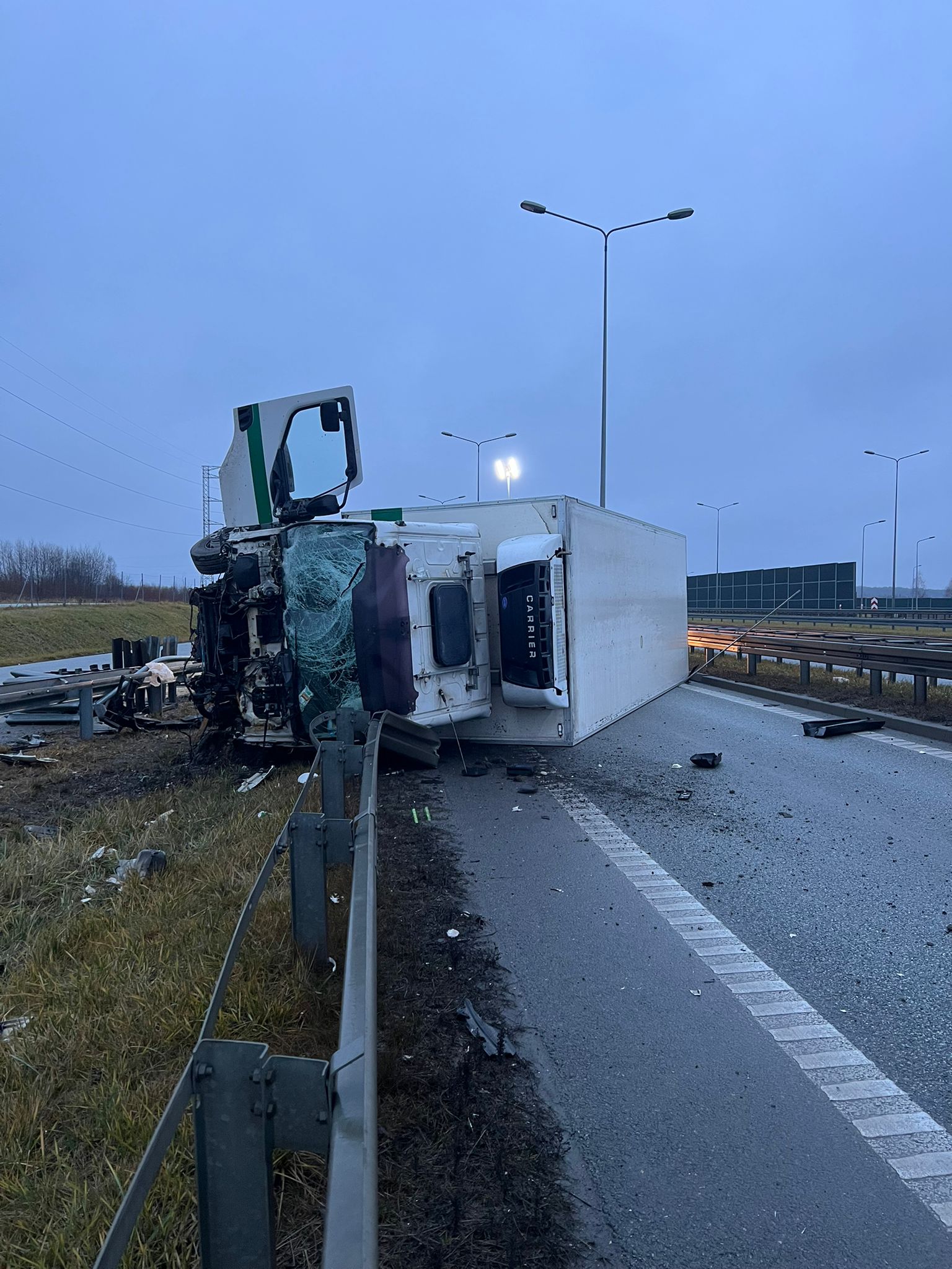 Ciężarówka na boku – wypadek w Kostomłotach