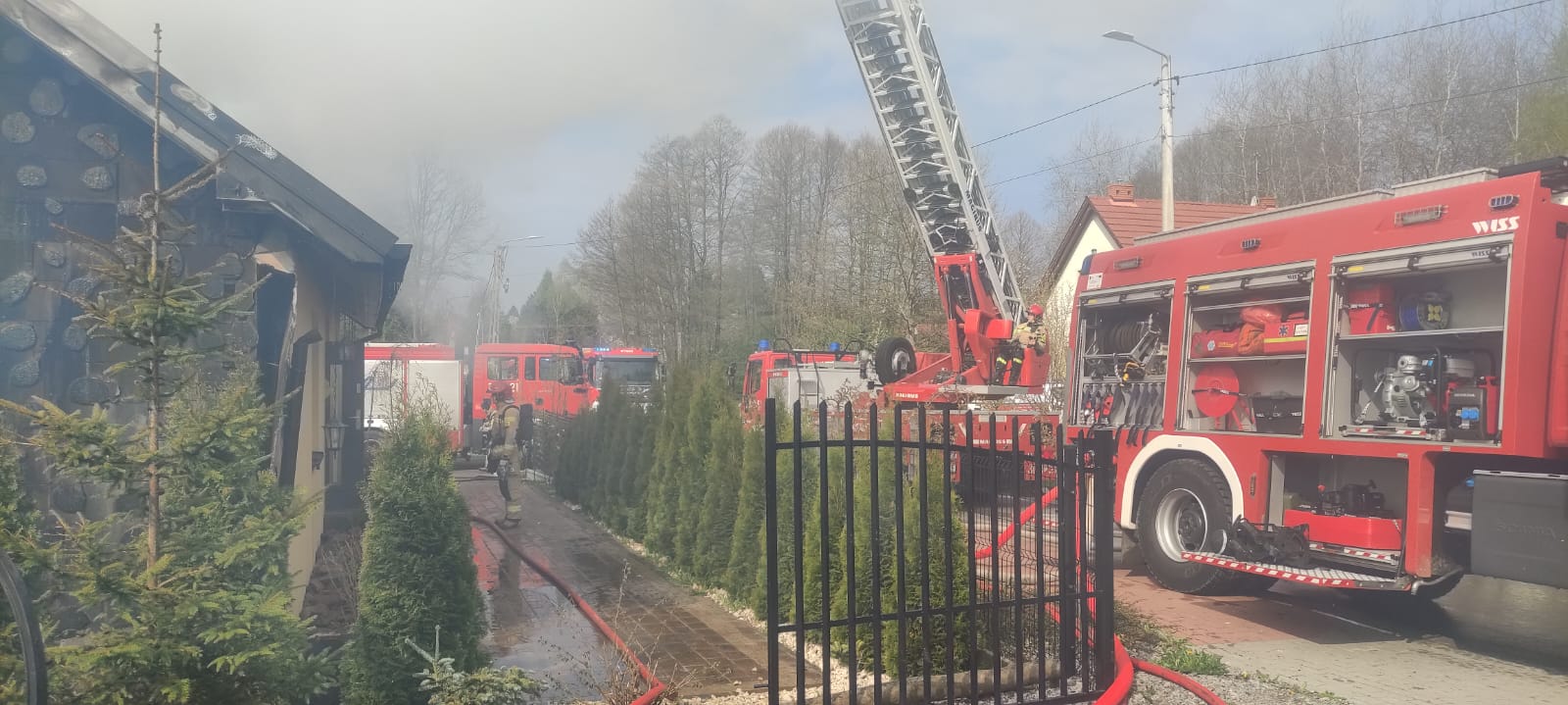 Pożar objął poddasze oraz kotłownię jednorodzinnego budynku mieszkalnego. Pogotowie energetyczne odcięło dopływ prądu do obiektu. Dwie kobiety mieszkające w domu same wyszły na zewnątrz i czekały na służby ratownicze. Strażacy zabezpieczyli teren działań i jednocześnie wdrożyli procedury z zakresu pierwszej pomocy w stosunku do poszkodowanych. Zespół Ratownictwa Medycznego przebadał kobiety i pozostawił je na miejscu zdarzenia. Strażacy rozpoczęli walkę z żywiołem podając wodę na palący się budynek wykorzystując w tym celu drabiny: mechaniczną oraz przystawne. Po ugaszeniu pożaru zdemontowano nadwyrężone przez ogień elementy konstrukcji. Na zakończenie pogorzelisko sprawdzono kamerą termowizyjną wkluczając zagrożenie.