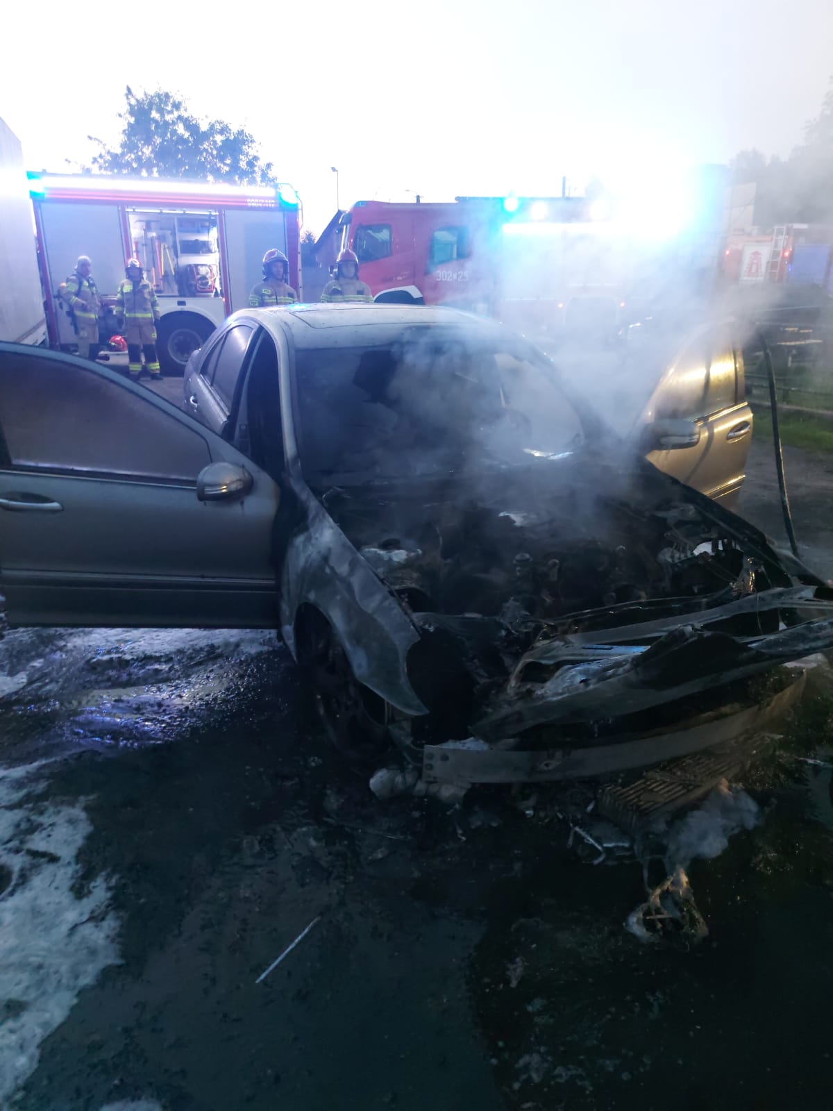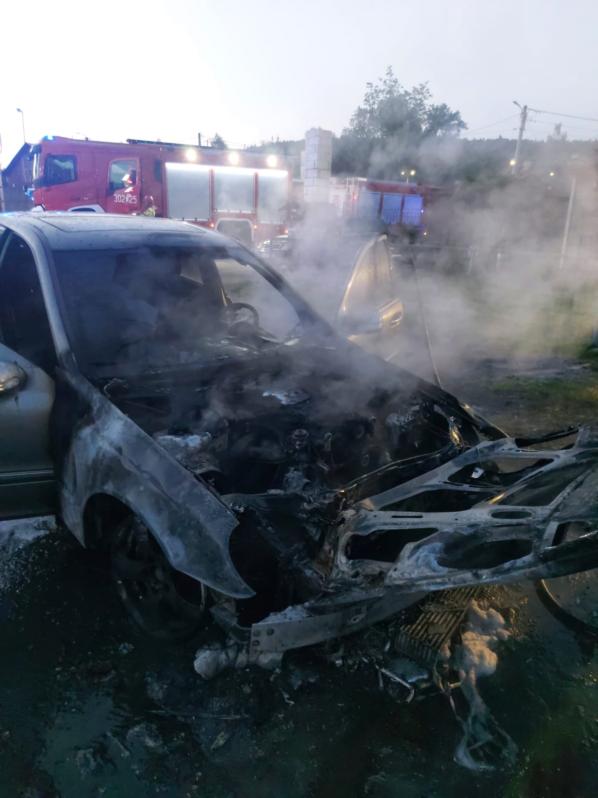 Pożar ogarnął komorę silnika oraz częściowo przedział pasażerski samochodu osobowego marki Mercedes C180. Pojazd stał na prywatnej posesji i w chwili zdarzenia nikt w nim nie przebywał. Strażacy zabezpieczyli teren działań i przystąpili do gaszenia ognia. Jak najszybciej odłączyli także zasilanie z akumulatora w aucie, a po przygaszeniu płomieni dogasili pożar i schłodzili wodą mocno rozgrzane elementy samochodu. Na zakończenie pojazd sprawdzili kamerą termowizyjną.