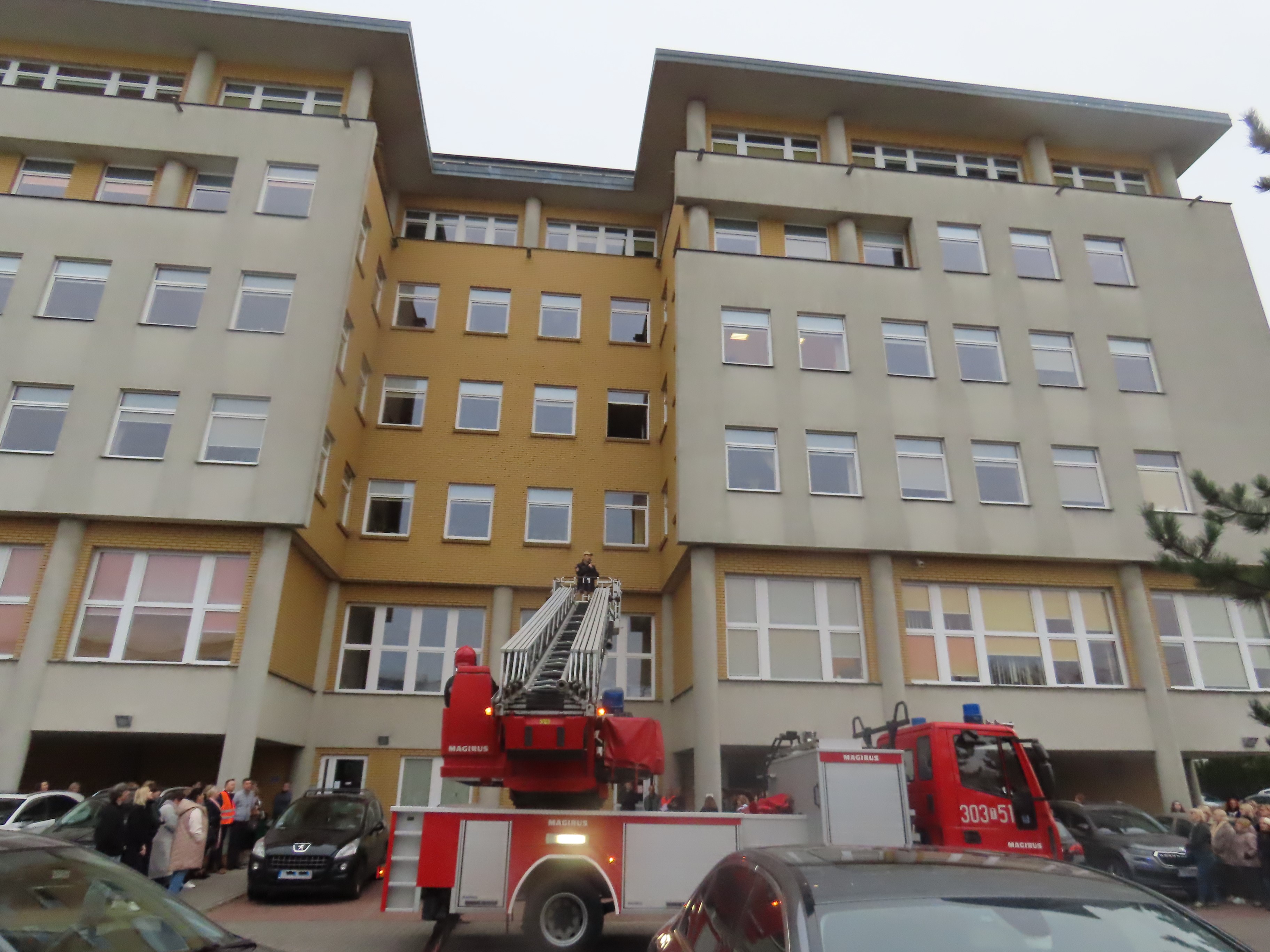 Pojazdy zaparkowały przy budynku Zakładu Ubezpieczeń Społecznych, a drabina mechaniczna zaczęła się rozstawiać. Na szczęście nie wydarzyło się tu nic groźnego - były to tylko ćwiczenia ewakuacyjne. Przeprowadzone z udziałem strażaków, którzy mogli zapoznać się z tym specyficznym budynkiem i charakterystyką jego funkcjonowania. 323 pracowników ZUS przećwiczyło w praktyce, bezpieczną ewakuację z zagrożonego budynku na miejsce zbiórki, a przede wszystkim wysłuchali pogadanki o bezpieczeństwie pożarowym. Mogli też na własne oczy zobaczyć jak dużo miejsca potrzebują samochody pożarnicze aby wykonywać swoje zadania. Niestandardowe gabaryty oraz konieczność rozstawiania podpór w drabinach mechanicznych powodują, że źle zaparkowane samochody czy zostawione w miejscach do tego nie przeznaczonych utrudniają działania staży pożarnej i tym samym opóźniają pomoc osobom zagrożonym. Pamiętajmy! Droga pożarowa oraz dojazdy do budynków to miejsca wolne od zaparkowanych pojazdów.