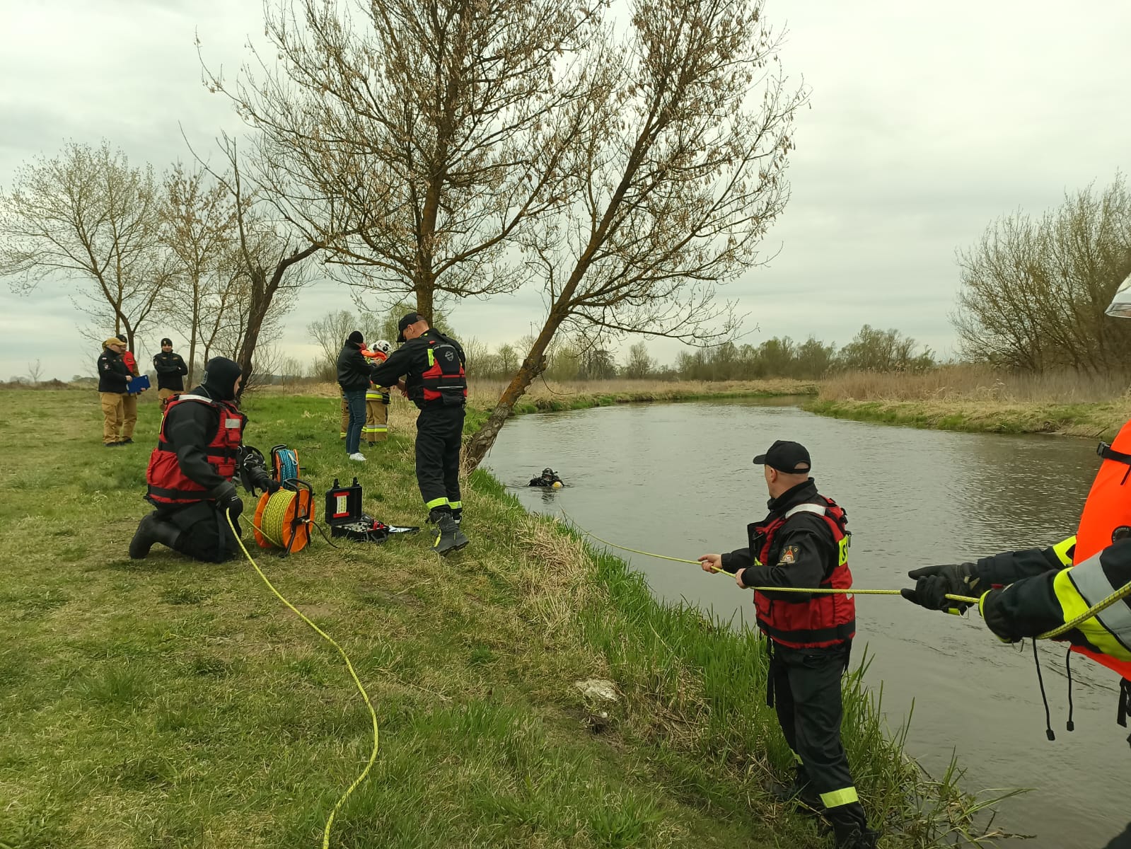 W ćwiczeniach uczestniczyli ratownicy ze Specjalistycznej Grupy Ratownictwa Wodno-Nurkowego Komendy Miejskiej Państwowej Straży Pożarnej w Kielcach. Po przybyciu na miejsce zgrupowania strażacy z Jednostki Ratowniczo-Gaśniczej Numer 2 realizowali epizody związane z działaniami ratowniczymi na akwenie, koncentrując się na szybkim dotarciu do poszkodowanych oraz ich bezpiecznej ewakuacji z wody. Działania prowadzone były w warunkach symulowanego zagrożenia hydrologicznego, co wymagało od ratowników precyzyjnej koordynacji oraz zastosowania specjalistycznego sprzętu wykorzystywanego w ratownictwie wodnym. Strażacy z Kielc skutecznie zlokalizowali osoby poszkodowane i podjęli je z wody, realizując założenia taktyczne ćwiczenia.