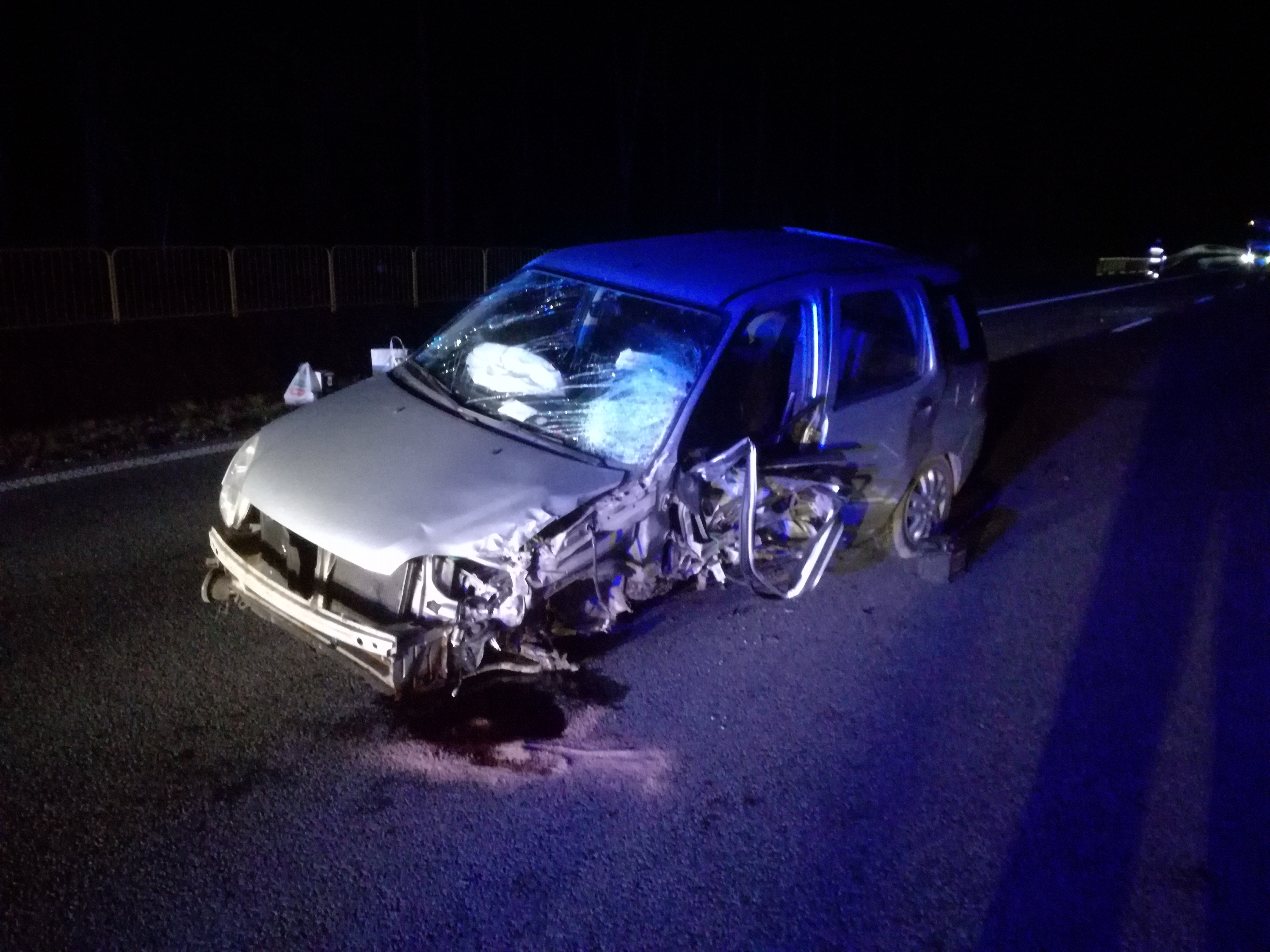 Na drodze wojewódzkiej numer 764 doszło do zderzenia dwóch samochodów osobowych marki: Mitsubishi i Subaru, którymi podróżowały łącznie 4 osoby. Samodzielnie opuściły one pojazdy i zostały przebadane prze Zespół Ratownictwa Medycznego w wyniku czego kierowcy obu aut zostali zabrani do szpitala. Strażacy zabezpieczyli teren działań, odłączyli zasilanie z akumulatorów w obu zniszczonych autach i usunęli powstałe na jezdni plamy płynów eksploatacyjnych. Do czasu zakończenia działań droga wojewódzka była nieprzejezdna.