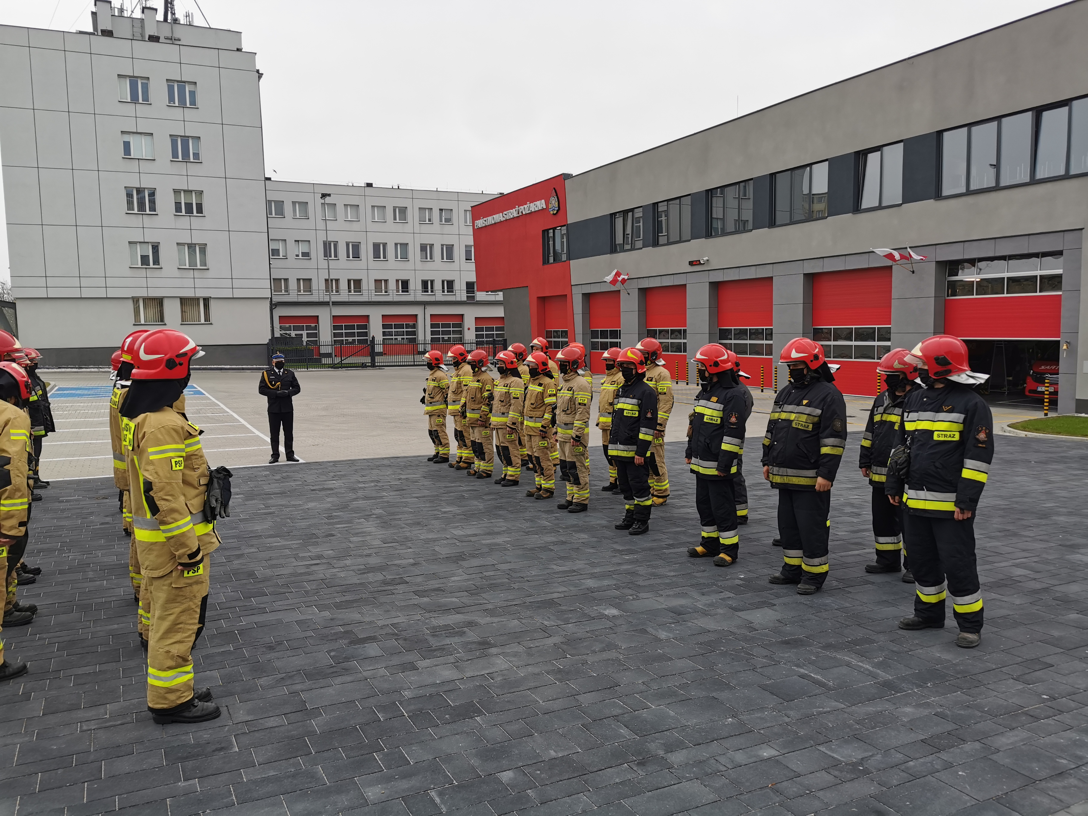 Podczas uroczystej zmiany służby przy obecności dowódców Jednostek Ratowniczo-Gaśniczych, kieleccy strażacy oddali cześć symbolom narodowym oraz wyrazili swój szacunek i patriotyzm.